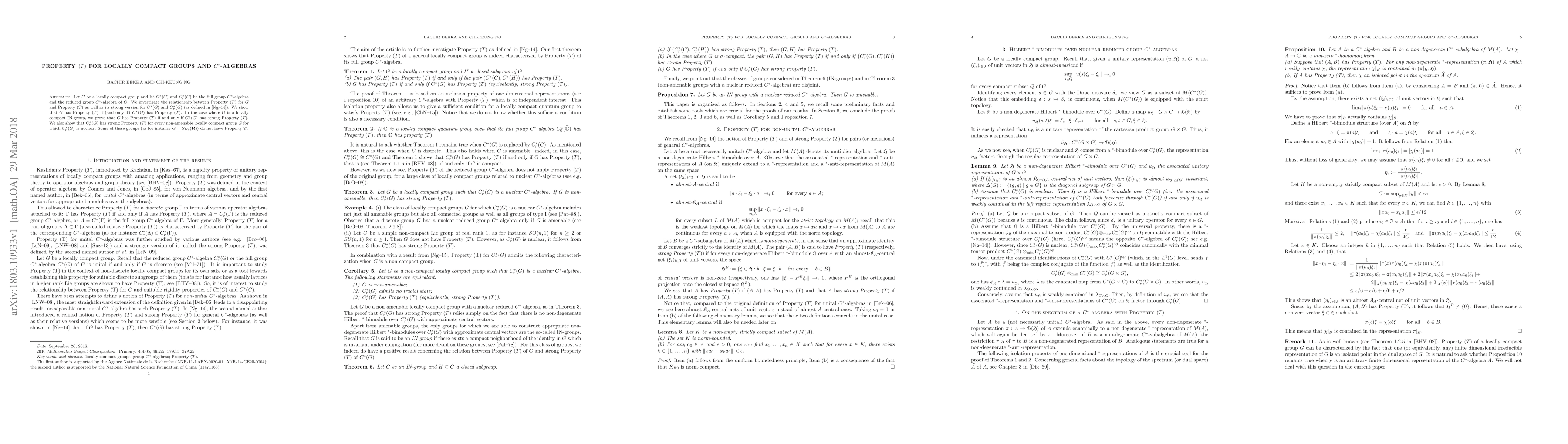 This paper explores the connection between Property (T) in locally compact groups and their corresponding $C^*$-algebras, proving that a group has Property (T) if and only if its full group $C^*$-algebra does. It also establishes that a locally compact IN-group has Property (T) if and only if its reduced group $C^*$-algebra has strong Property (T).