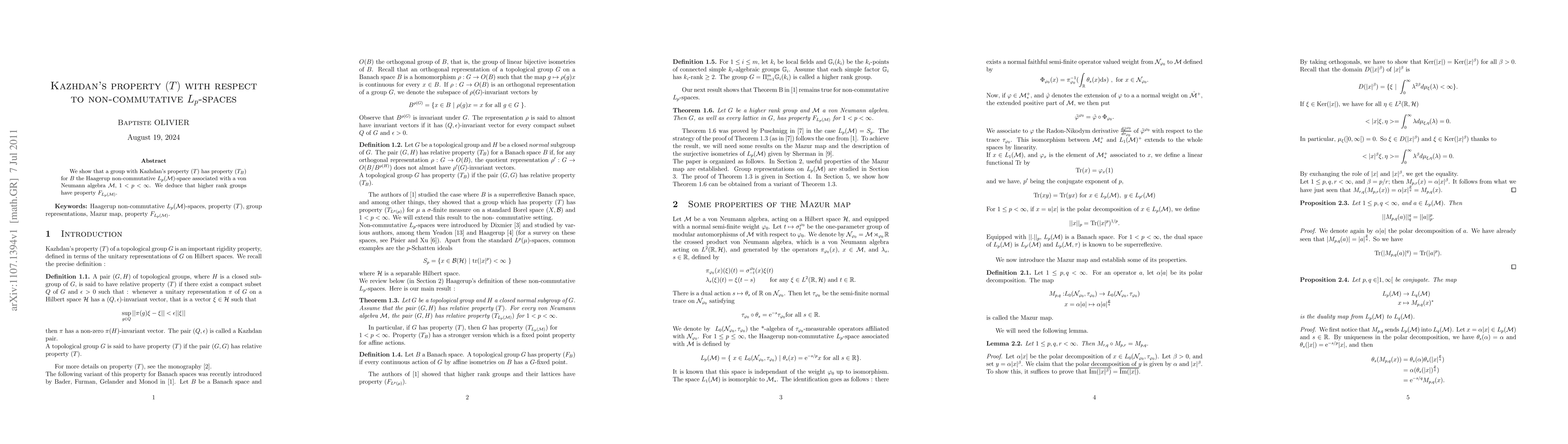 Summary: This paper demonstrates that groups possessing Kazhdan's property (T) also exhibit property (T_{B}) for the Haagerup non-commutative $L_{p}$-space linked to a von Neumann algebra $\mathcal{M}$, thereby extending the implications of property (T) to non-commutative settings.