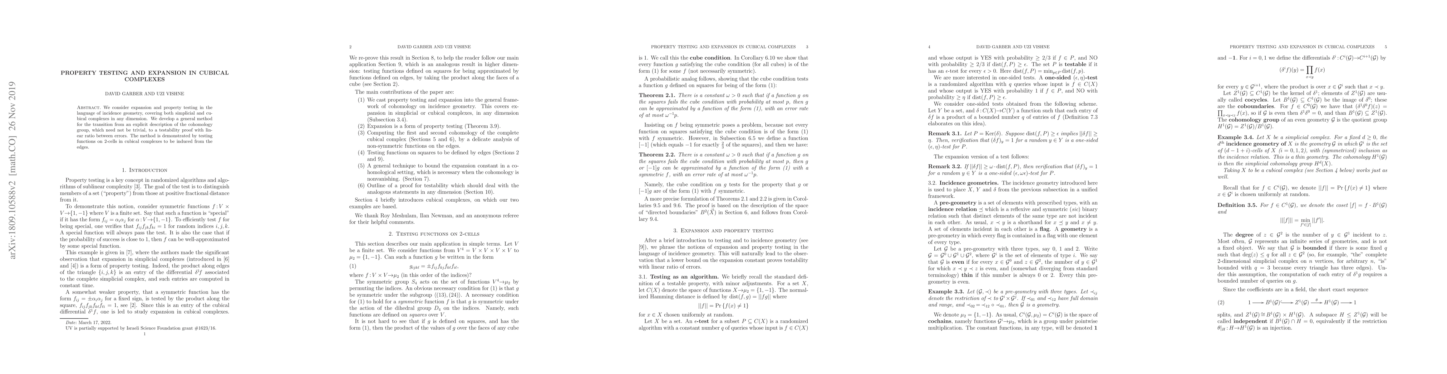 This paper develops a method for testing properties and expansion in cubical complexes by relating an explicit description of cohomology to testability, demonstrating its application in testing functions on 2-cells in cubical complexes to ensure they are induced from edges, with linear error ratios.