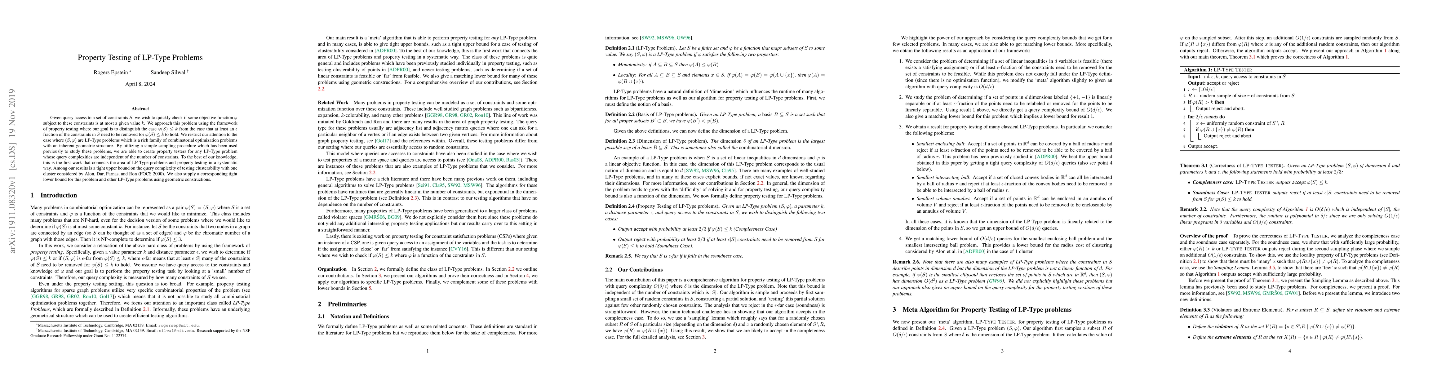 This paper develops property testers for LP-Type problems, aiming to determine if an objective function under given constraints is at most a specified value with minimal queries. The study establishes a systematic connection between LP-Type problems and property testing, providing tight upper and lower bounds for query complexity.