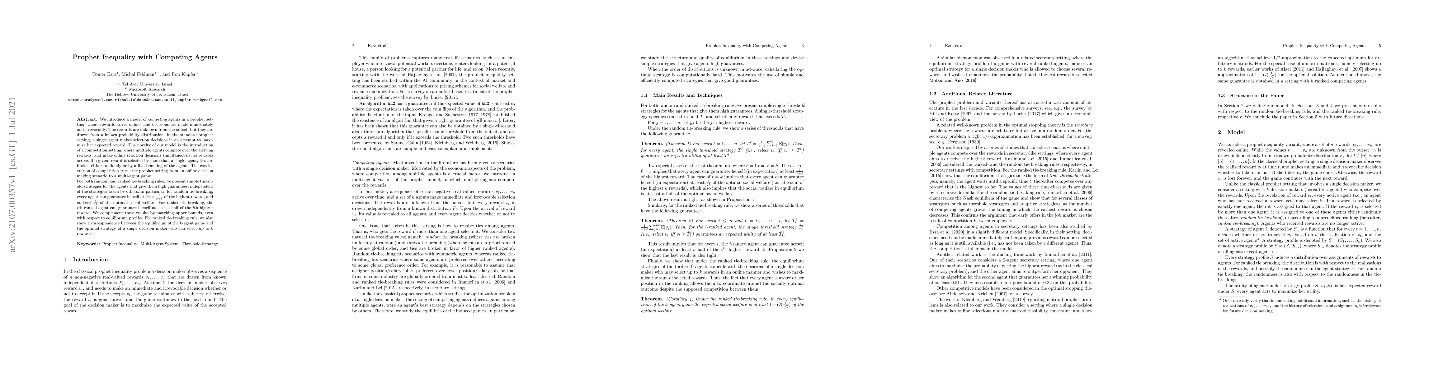 Researchers introduce a model where multiple agents compete for online rewards in a prophet setting, achieving guarantees and bounds for optimal strategy selection and social welfare.
