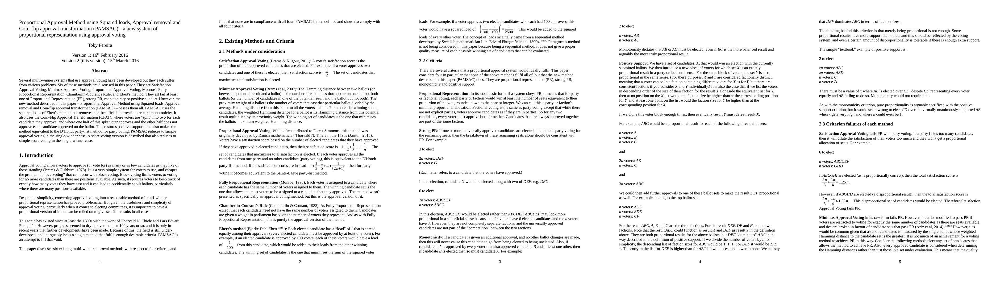 A new proportional representation method called PAMSAC passes common tests for proportional representation, monotonicity, and positive support, outperforming existing multi-winner systems that use approval voting.
