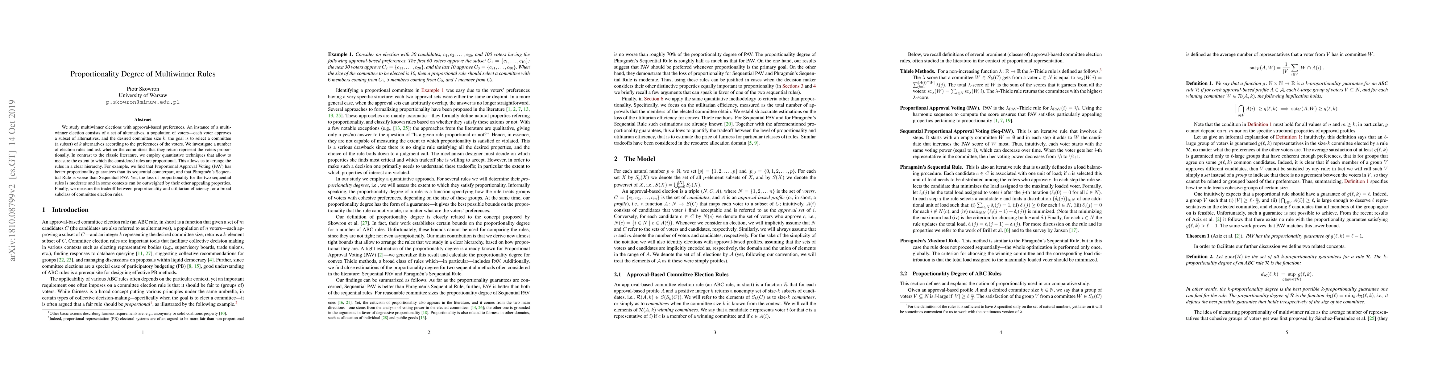 This paper examines multiwinner election rules based on approval voting, assessing their proportionality in selecting committees. It finds that Proportional Approval Voting (PAV) offers better proportionality than its sequential counterpart, while Phragmén's Sequential Rule is less proportional but may still be preferred for other reasons.