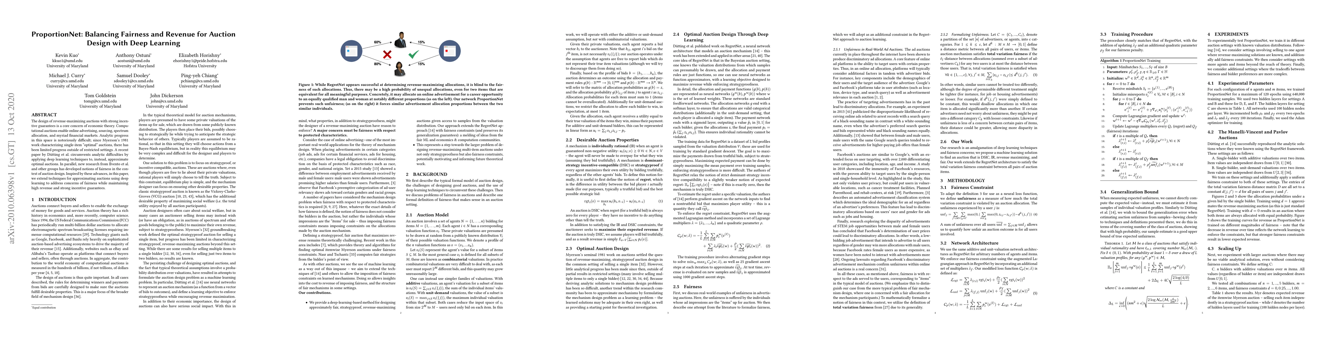 This paper proposes ProportionNet, a deep learning approach to design auctions that balance fairness and revenue maximization while ensuring strong incentive guarantees. It builds on recent advancements in computational auction design and fairness considerations to create a more equitable yet efficient auction mechanism.