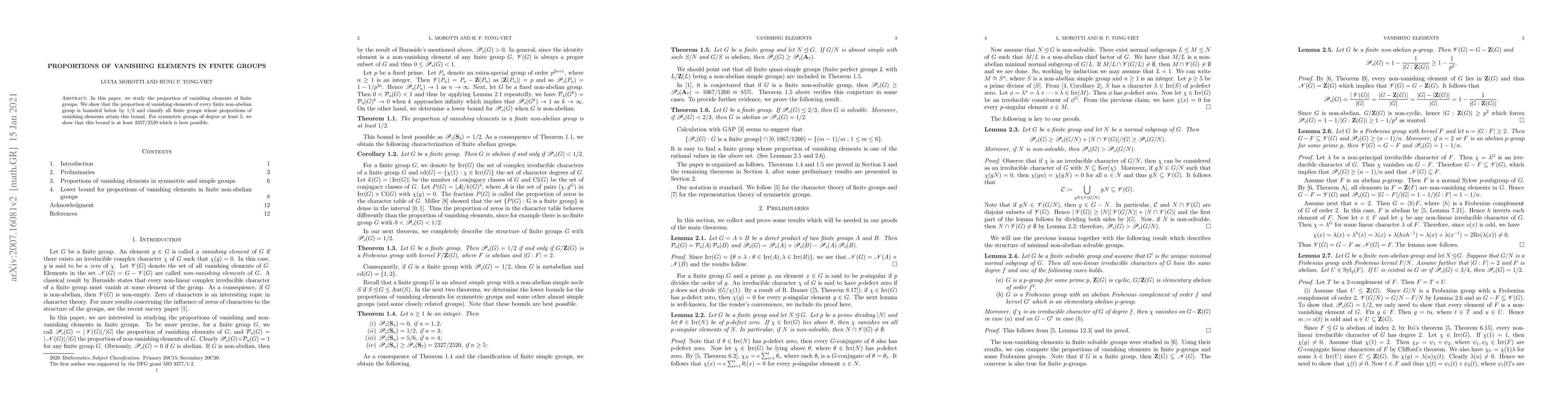 The research methodology involves studying the proportion of vanishing elements in finite groups, employing group theory, and character theory of finite groups, with a focus on non-abelian groups and symmetric groups of degree at least 5.