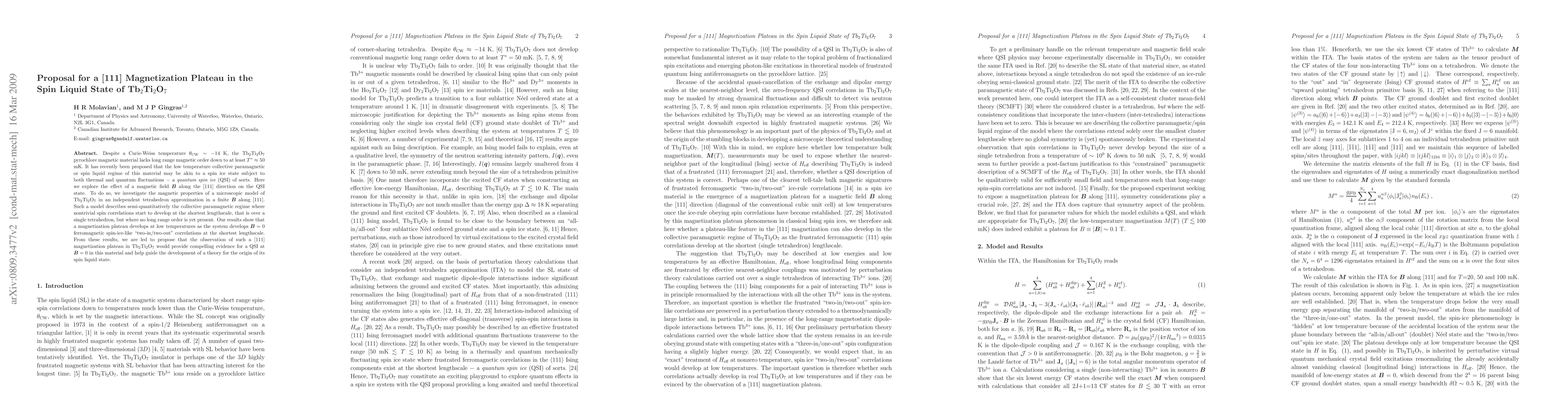 This paper proposes a [111] magnetization plateau in Tb2Ti2O7's spin liquid state, suggesting that such a plateau would indicate the presence of a quantum spin ice (QSI) at zero magnetic field, providing insight into the material's spin liquid behavior.