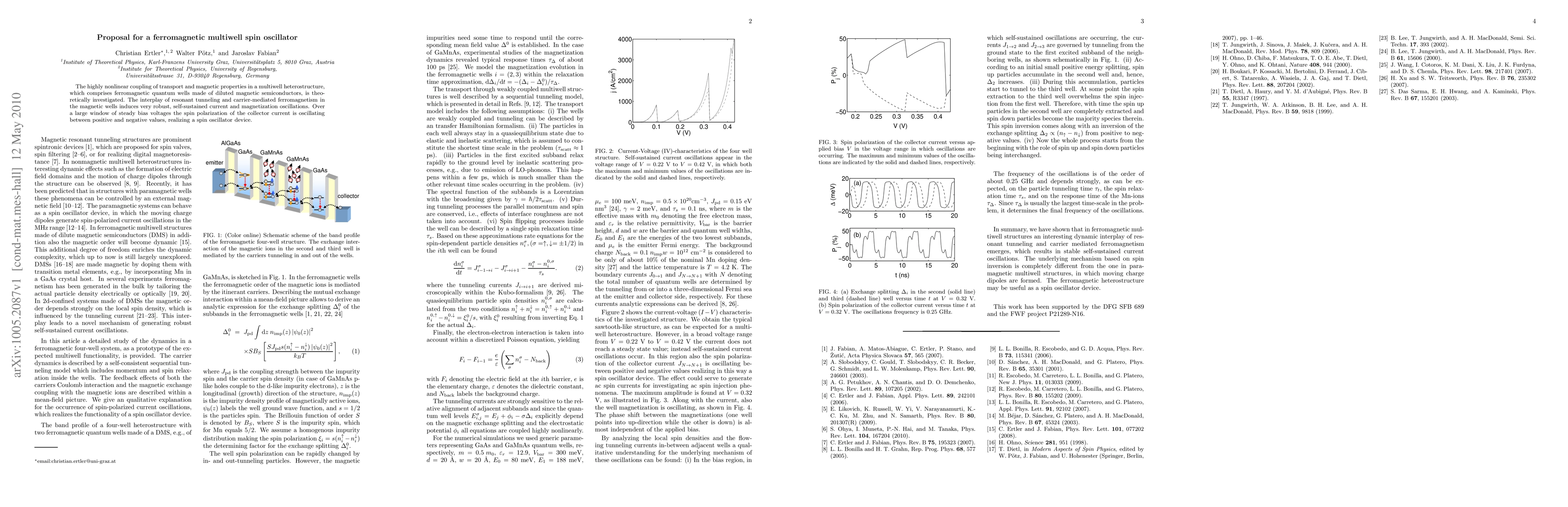 Researchers propose a ferromagnetic multiwell spin oscillator that generates robust current and magnetization oscillations through nonlinear coupling of transport and magnetic properties. The device oscillates between positive and negative spin polarization values over a large range of bias voltages.