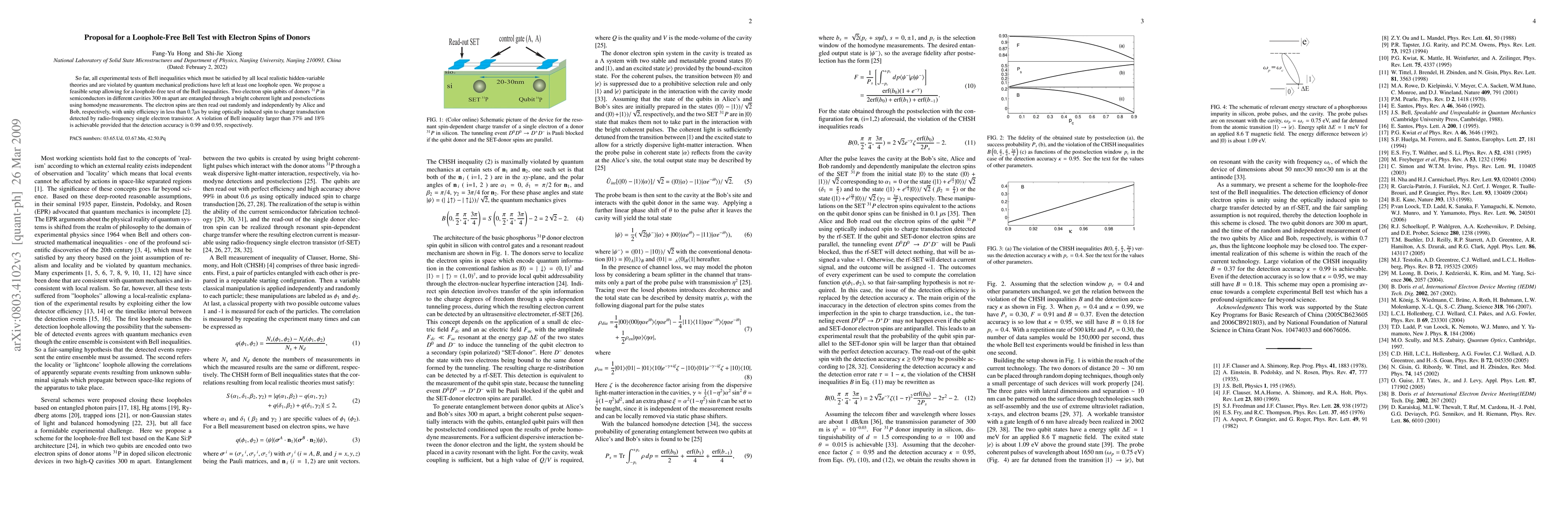 This paper proposes a loophole-free Bell test using electron spin qubits from phosphorus donors in semiconductors, aiming to close all experimental loopholes in previous tests. The setup utilizes entangled electron spins in separate cavities, coherent light, and radio-frequency single electron transistors for high-efficiency readout, potentially achieving a Bell inequality violation by more than 37% with high detection accuracy.