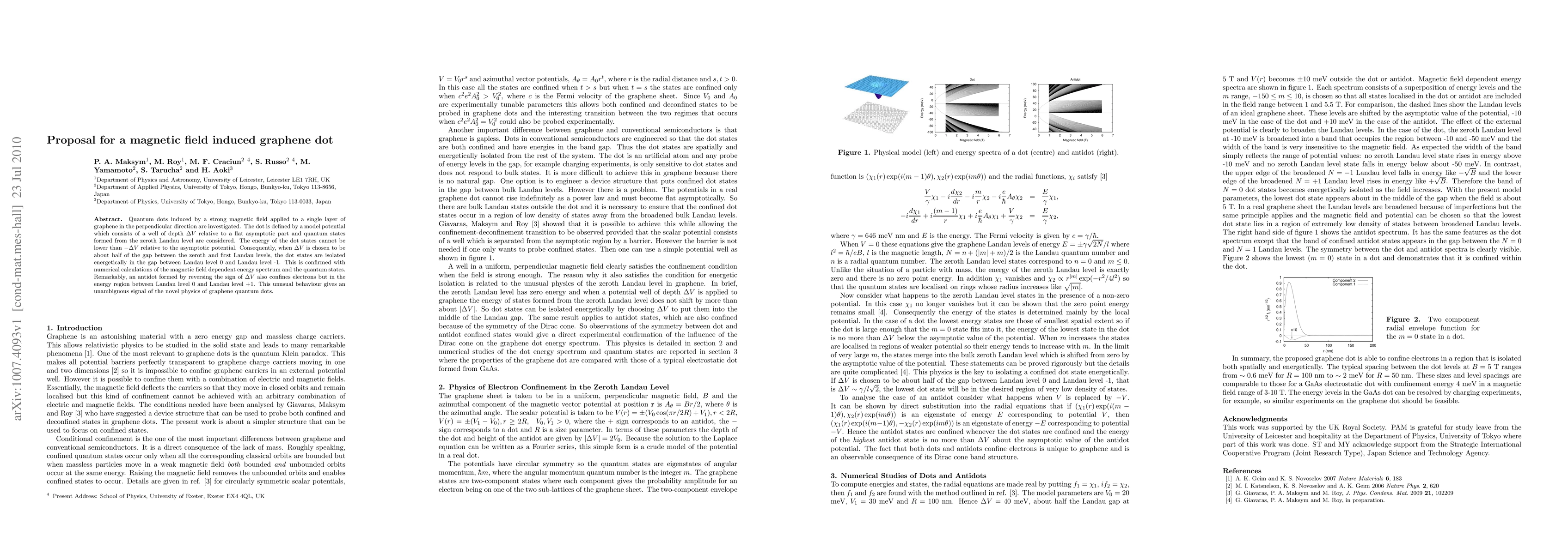 This paper proposes a method to create quantum dots in graphene using a strong magnetic field, isolating dot states energetically in the gap between Landau levels. The study confirms this behavior through numerical calculations, revealing unique confinement properties for both dots and antidots in different Landau level gaps.