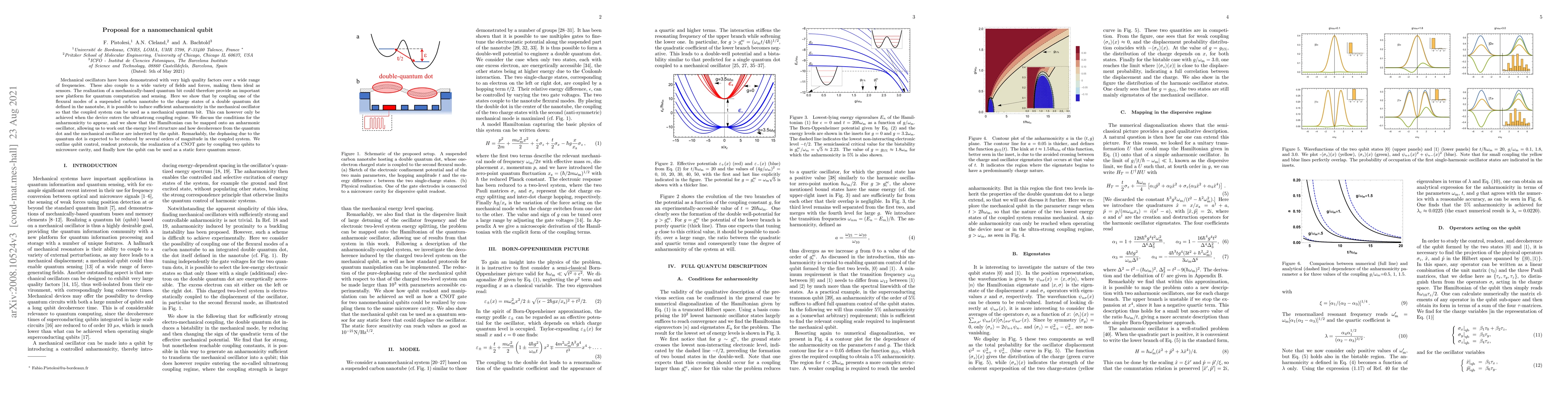 Mechanical oscillators have been demonstrated with very high quality factors over a wide range of frequencies. These also couple to a wide variety of fields and forces, making them ideal as sensors. The realization of a mechanically-based quantum bit could therefore provide an important new platform for quantum computation and sensing. Here we show that by coupling one of the flexural modes of a suspended carbon nanotube to the charge states of a double quantum dot defined in the nanotube, it is possible to induce sufficient anharmonicity in the mechanical oscillator so that the coupled system can be used as a mechanical quantum bit. This can however only be achieved when the device enters the ultrastrong coupling regime. We discuss the conditions for the anharmonicity to appear, and we show that the Hamiltonian can be mapped onto an anharmonic oscillator, allowing us to work out the energy level structure and how decoherence from the quantum dot and the mechanical oscillator are inherited by the qubit. Remarkably, the dephasing due to the quantum dot is expected to be reduced by several orders of magnitude in the coupled system. We outline qubit control, readout protocols, the realization of a CNOT gate by coupling two qubits to microwave cavity, and finally how the qubit can be used as a static force quantum sensor.