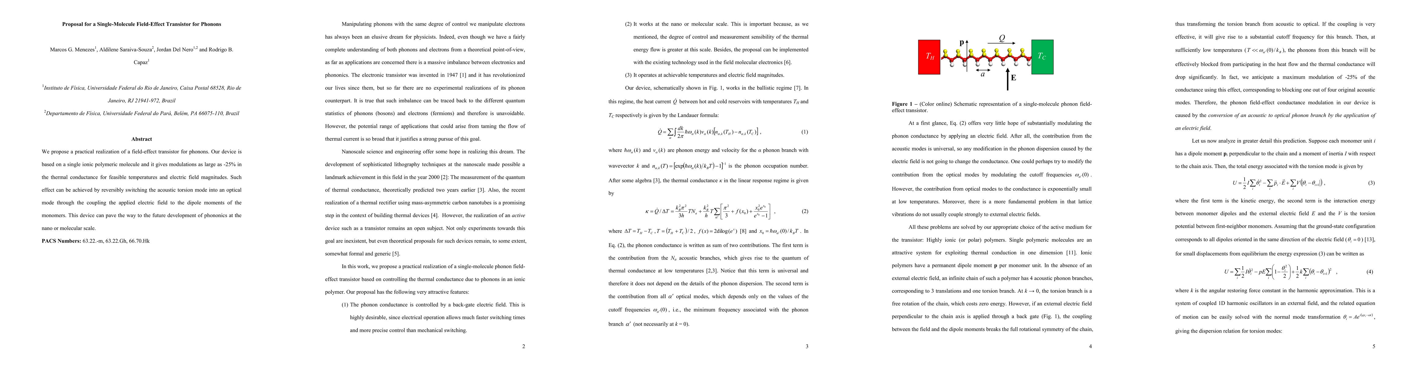We propose a practical realization of a field-effect transistor for phonons. Our device is based on a single ionic polymeric molecule and it gives modulations as large as -25% in the thermal conductance for feasible temperatures and electric field magnitudes. Such effect can be achieved by reversibly switching the acoustic torsion mode into an optical mode through the coupling of an applied electric field to the dipole moments of the monomers. This device can pave the way to the future development of phononics at the nanoscale or molecular scale.