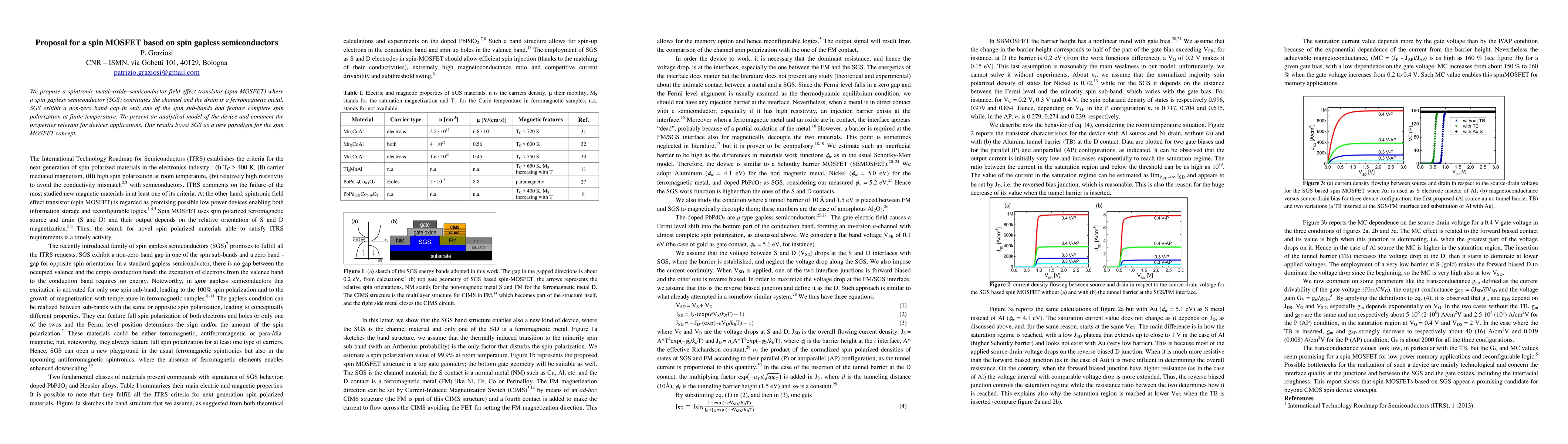 This paper proposes a spin MOSFET utilizing a spin gapless semiconductor (SGS) for the channel and a ferromagnetic metal for the drain. The SGS's unique properties, including complete spin polarization at finite temperatures, make it a promising material for spintronic devices, offering a new paradigm for spin MOSFET applications.
