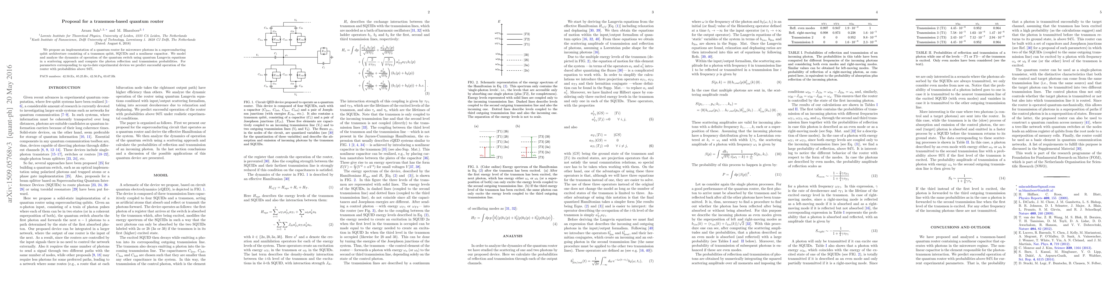 This paper proposes a quantum router for microwave photons using a transmon qubit, SQUIDs, and a nonlinear capacitor. The authors model its operation using quantum Langevin equations and predict successful operation with reflection and transmission probabilities exceeding 94% for current experimental parameters.
