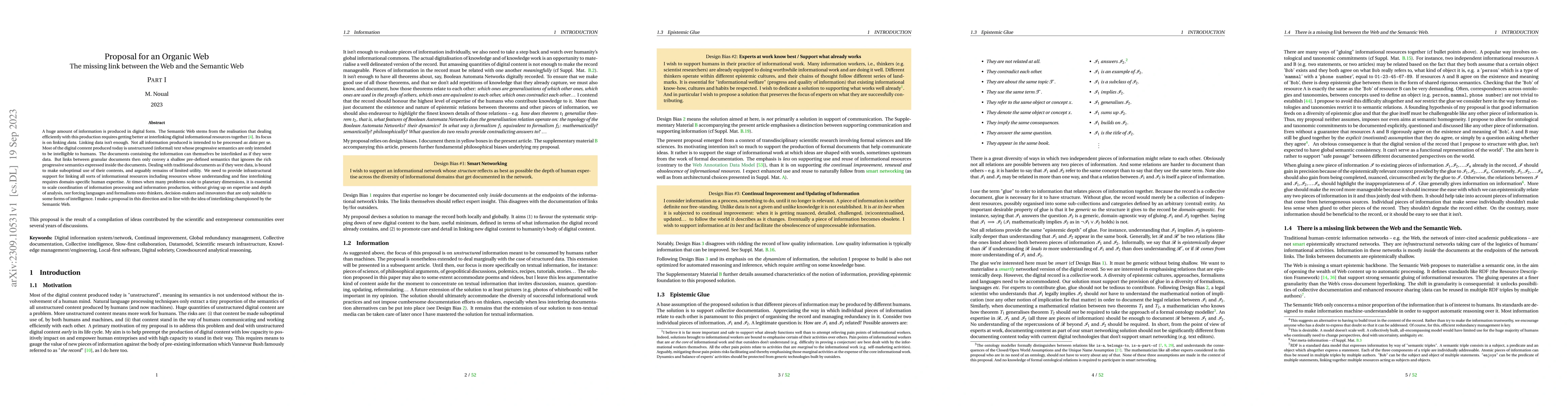 This paper proposes an "Organic Web" to enhance the Semantic Web by interlinking diverse informational resources, emphasizing the need for domain-specific human expertise and avoiding the imposition of unsuitable languages and formalisms, aiming to scale coordination and depth of analysis globally.