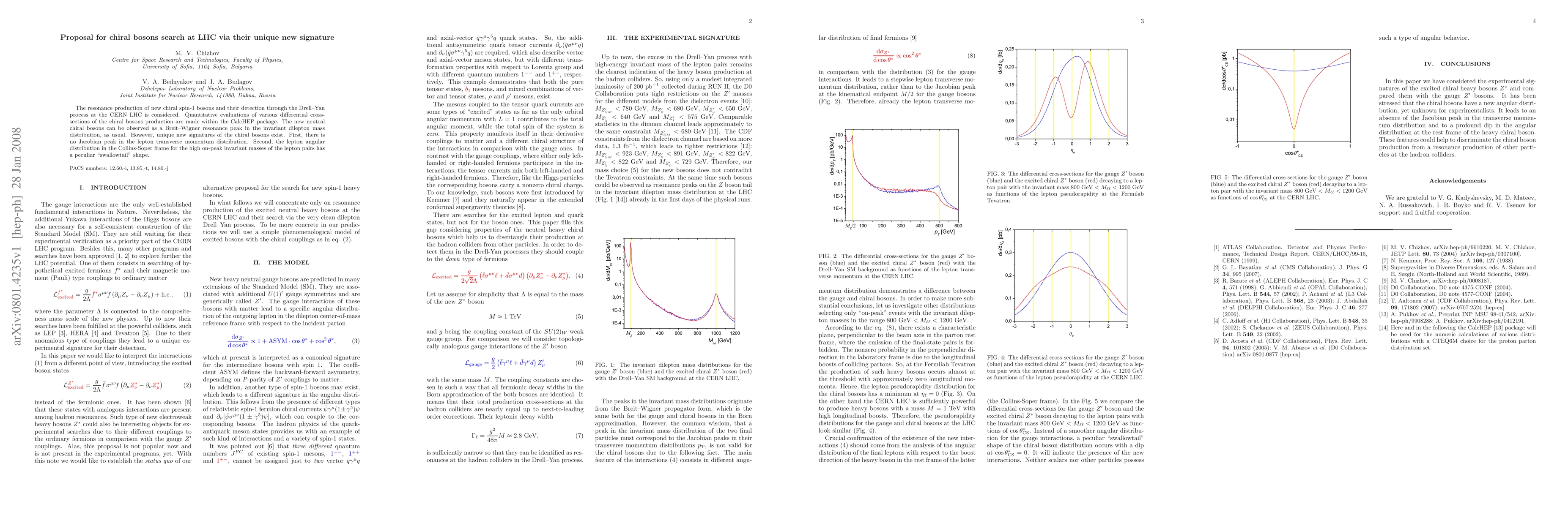 Researchers propose a new method to detect chiral bosons at the LHC, focusing on unique signatures in lepton transverse momentum and angular distributions, which could provide a distinct signal for their detection.