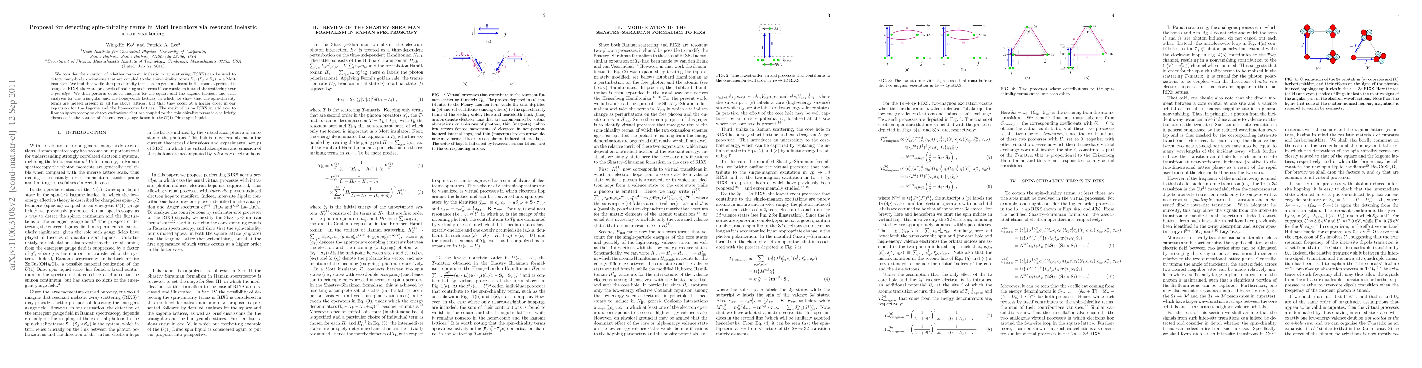 This paper proposes using resonant inelastic x-ray scattering (RIXS) to detect spin-chirality terms in Mott insulators, finding that while conventional RIXS setups miss these terms, scattering near a pre-edge can reveal them. It analyzes various lattices and concludes that while spin-chirality terms are present, their detection is more feasible in square and kagome lattices.