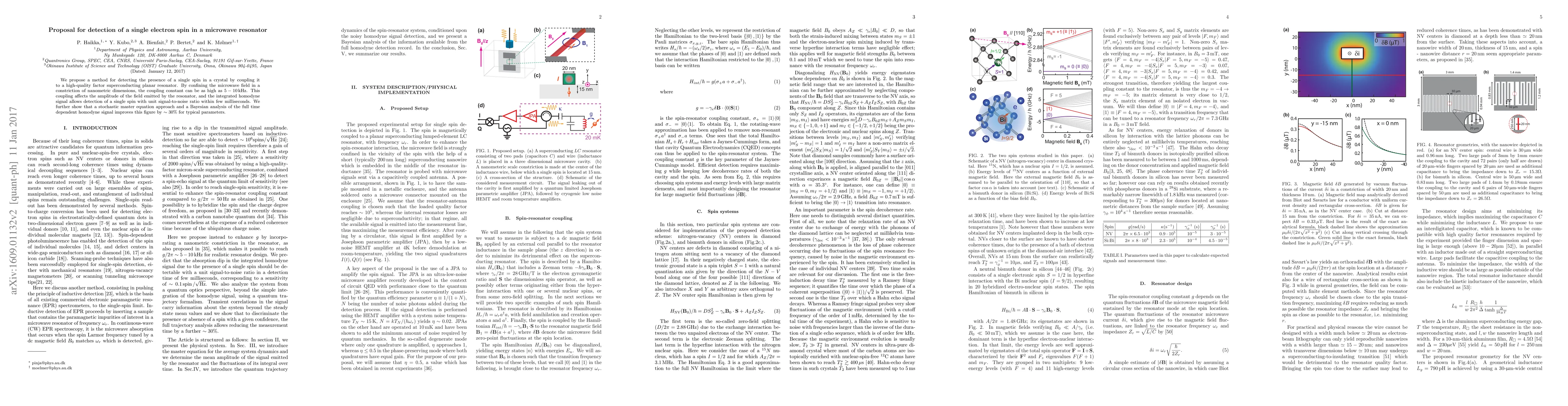 The paper presents a detailed theoretical analysis of a superconducting microwave resonator coupled to a single electron spin, including a stochastic master equation approach and Bayesian analysis for improved detection sensitivity.
