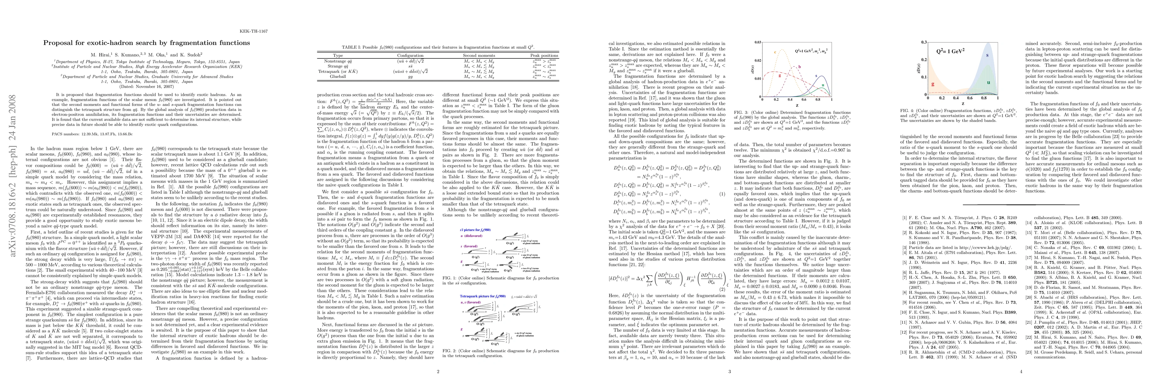 This paper proposes using fragmentation functions to identify exotic hadrons, specifically examining the scalar meson f_0(980). It finds that the second moments and functional forms of u- and s-quark fragmentation functions can differentiate tetraquark structures from conventional q̅q pairs, but current data are insufficient for determining f_0(980)'s internal structure, suggesting future precise data may reveal exotic quark configurations.