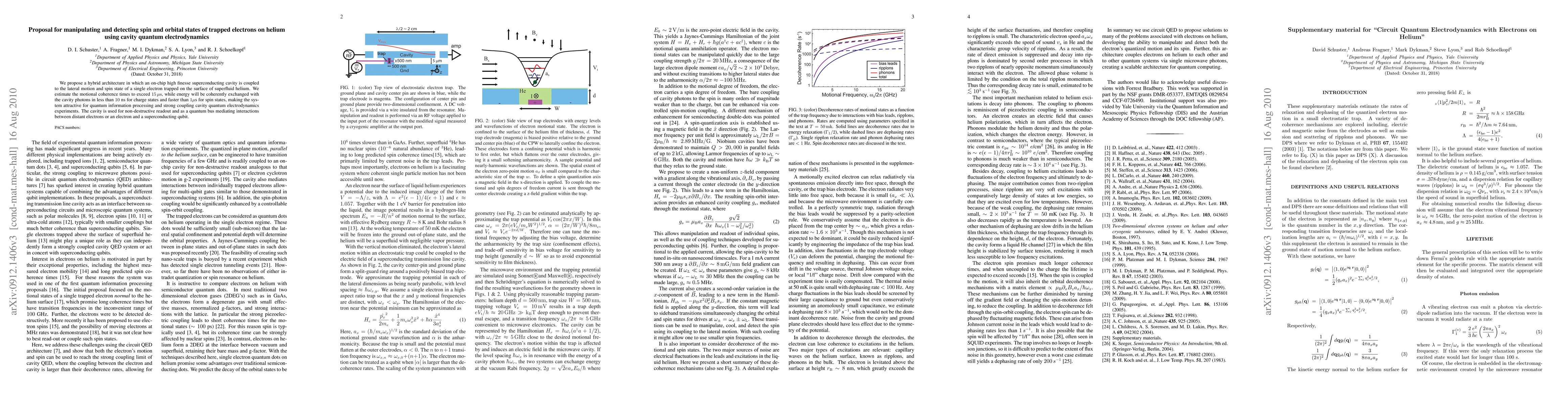 This paper proposes coupling a high finesse superconducting cavity to a trapped electron on helium to manipulate and detect its spin and orbital states, leveraging cavity quantum electrodynamics for quantum information processing. The system promises motional coherence times exceeding 15 microseconds and rapid coherence exchange, enabling nondestructive readout and distant electron coupling.