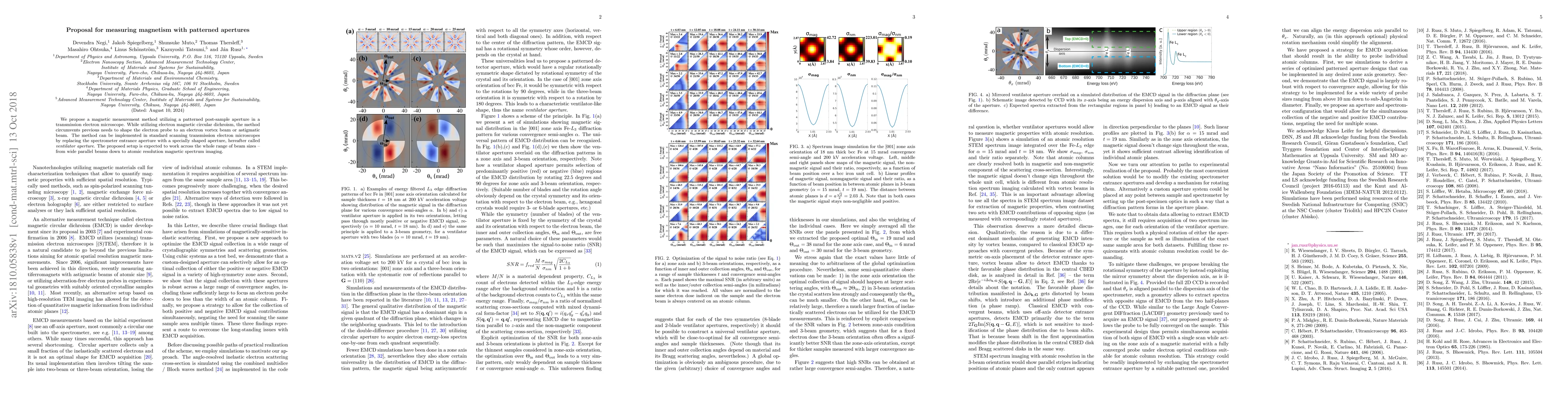 Researchers propose a method to measure magnetism using a patterned aperture in a transmission electron microscope, eliminating the need for shaping the electron probe, and enabling magnetic spectrum imaging at both wide and atomic resolutions.
