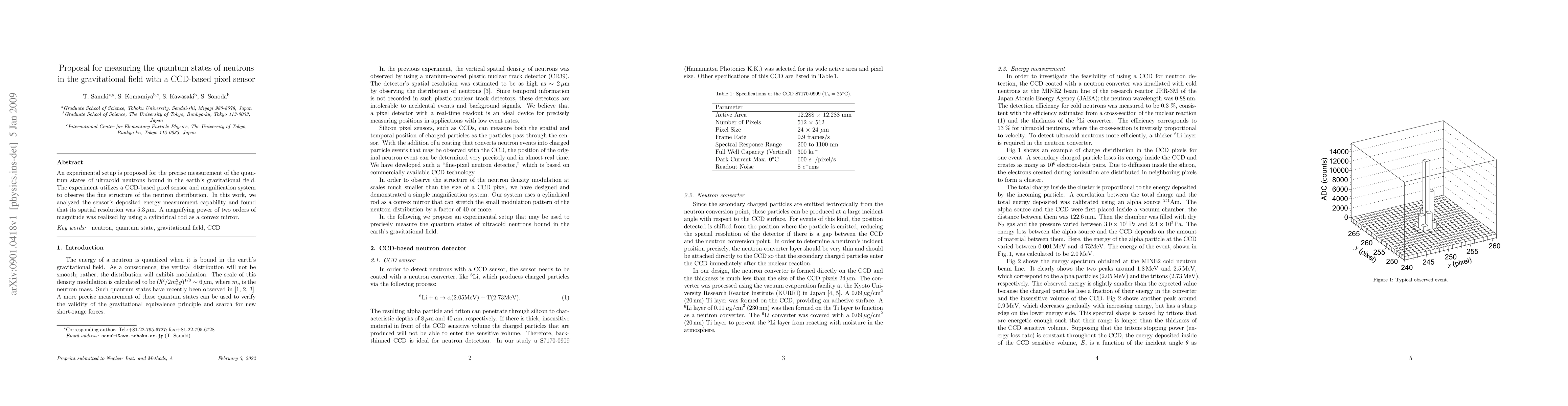 This paper proposes an experimental setup using a CCD-based pixel sensor to measure the quantum states of ultracold neutrons in Earth's gravitational field. The setup achieves a spatial resolution of 5.3 µm and employs a magnifying system with a cylindrical rod to enhance observation precision.