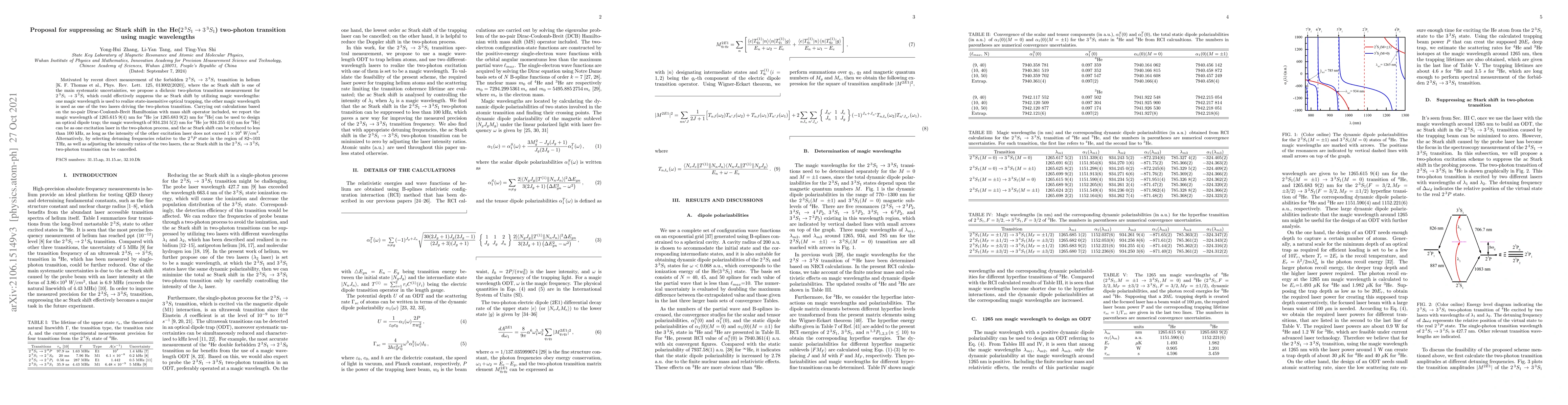 This paper proposes a method to suppress the ac Stark shift in the forbidden $2\,^3S_1\rightarrow3\,^3S_1$ transition in helium using magic wavelengths for optical trapping and laser excitation, achieving a reduction of the ac Stark shift to less than 100 kHz.