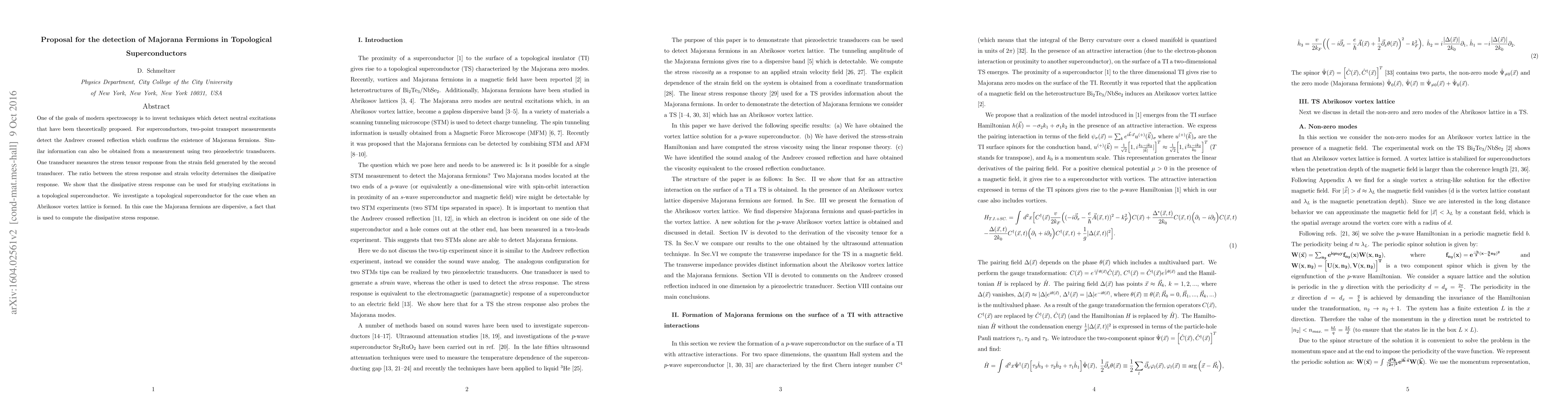 One of the goals of modern spectroscopy is to invent techniques which detect neutral excitations that have been theoretically proposed. For superconductors, two point transport measurements detect the Andreev crossed reflection which confirms the existence of the Majorana fermions. Similar information can be obtained from a measurement using two piezoelectric transducers. One transducer measures the stress tensor response from the strain field generated by the second transducer. The ratio between the stress response and strain velocity determines the dissipative response. We will show that the dissipative stress response can be used for a Topological Superconductor. We will investigate a Topological Superconductor in a magnetic field, an Abrikosov vortex lattice with Majorana dispersive fermions is formed which is used to compute the dissipative stress response and identify the Majorana fermions and quasi-particles.