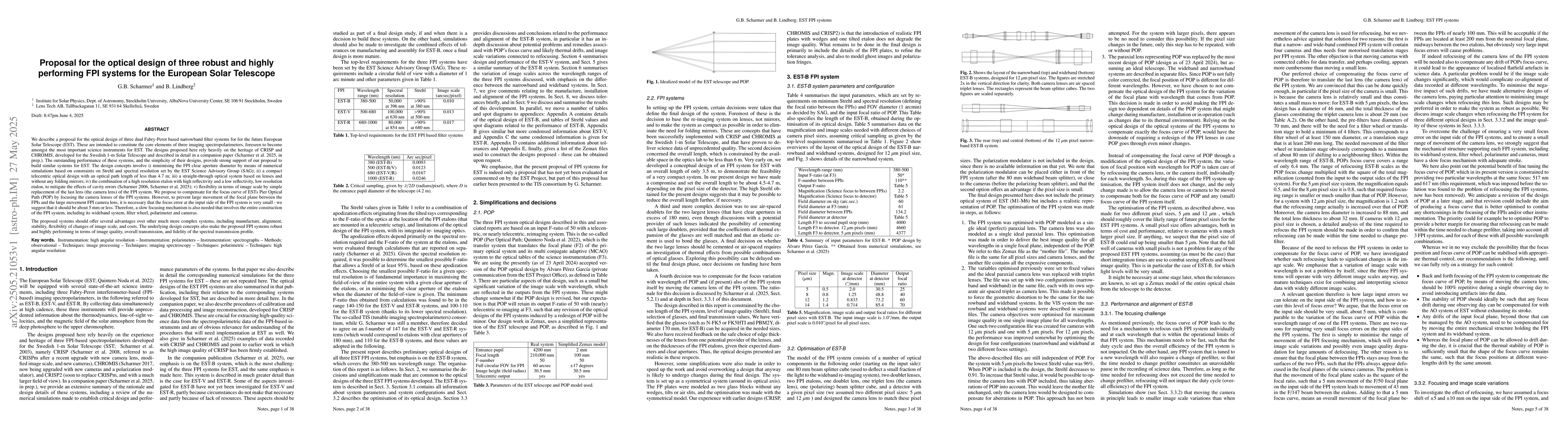 The proposal outlines the optical design of three Fabry-Perot Interferometer (FPI) systems for the European Solar Telescope (EST), leveraging heritage from CRISP and CHROMIS instruments.