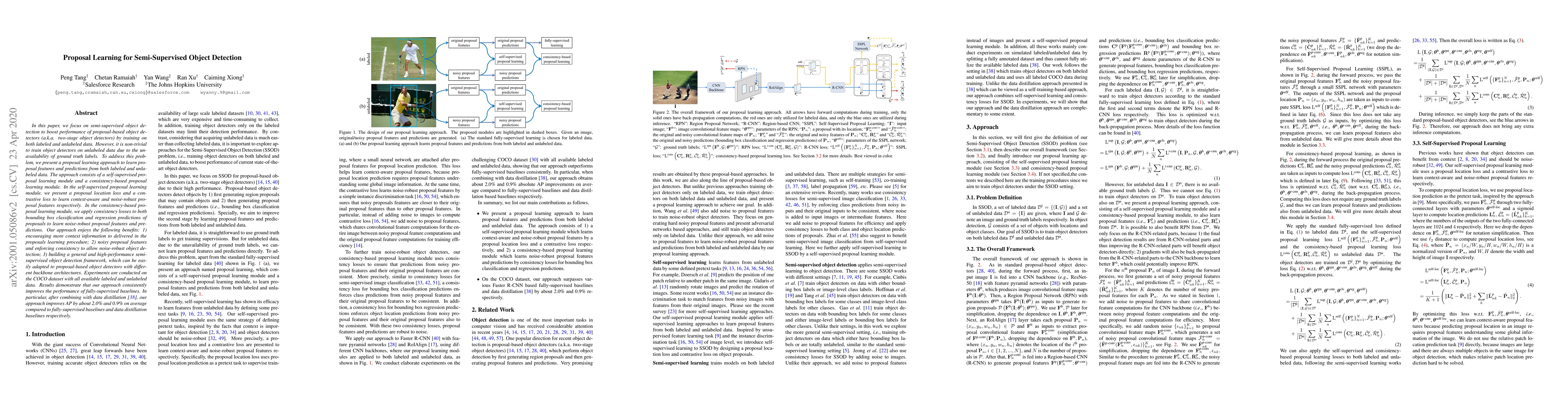 This paper proposes a semi-supervised method for enhancing proposal-based object detectors using both labeled and unlabeled data. It employs self-supervised and consistency-based learning modules to improve proposal features and predictions, leading to noise-robust detection and general framework adaptability. Experiments on COCO show a notable performance boost, improving Average Precision by about 2.0% compared to fully-supervised baselines.