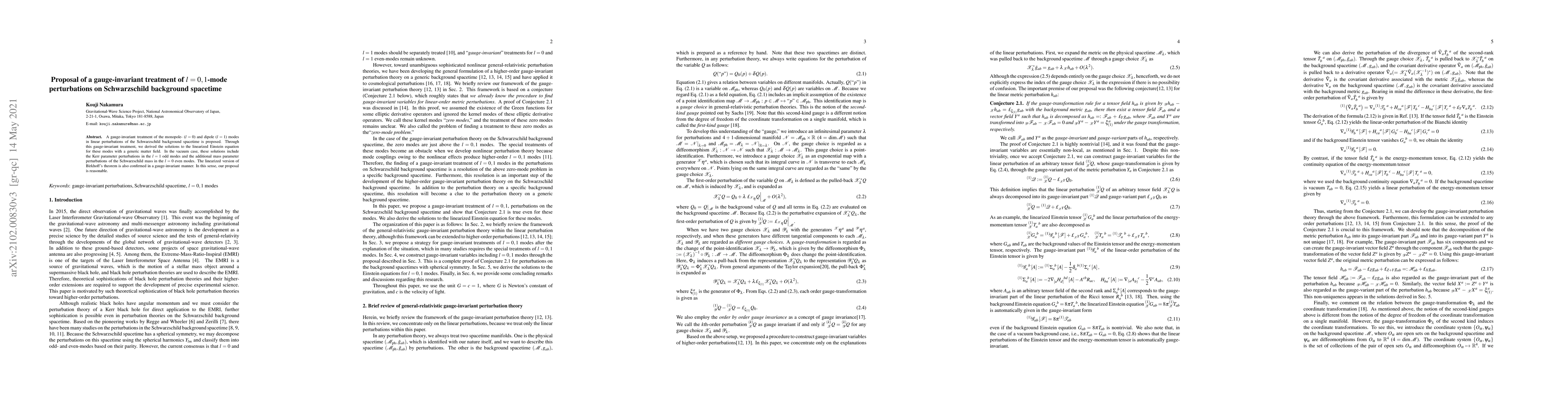 A gauge-invariant treatment of the monopole- ($l=0$) and dipole ($l=1$) modes in linear perturbations of the Schwarzschild background spacetime is proposed. Through this gauge-invariant treatment, we derived the solutions to the linearized Einstein equation for these modes with a generic matter field. In the vacuum case, these solutions include the Kerr parameter perturbations in the $l=1$ odd modes and the additional mass parameter perturbations of the Schwarzschild mass in the $l=0$ even modes. The linearized version of Birkhoff's theorem is also confirmed in a gauge-invariant manner. In this sense, our proposal is reasonable.