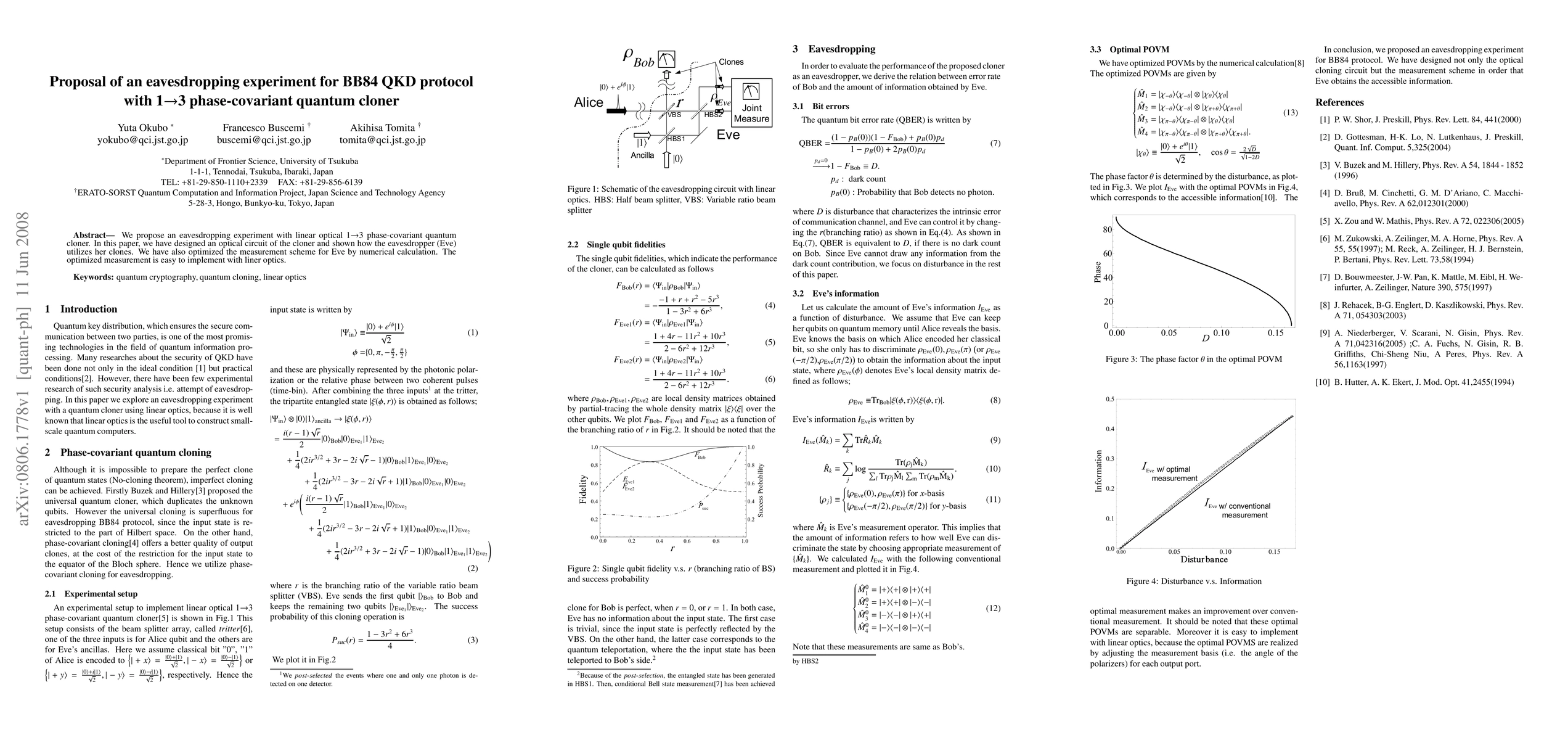 This paper proposes an eavesdropping experiment for the BB84 quantum key distribution (QKD) protocol using a linear optical 1-3 phase-covariant quantum cloner. The authors design an optical circuit for the cloner and demonstrate how the eavesdropper can utilize the clones, optimizing the measurement scheme through numerical calculations for ease of implementation with linear optics.