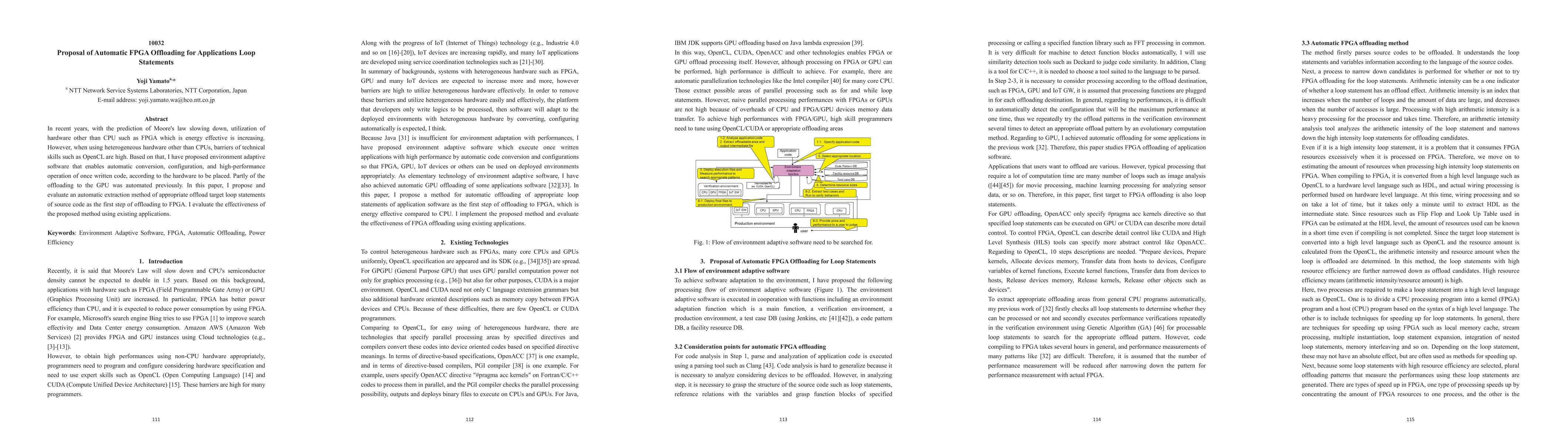 This paper proposes an automatic FPGA offloading method for loop statements in applications, aiming to simplify the use of energy-efficient FPGA hardware by reducing the technical skill barrier. The method automates the extraction of suitable loop statements for offloading, evaluating its effectiveness through existing applications.