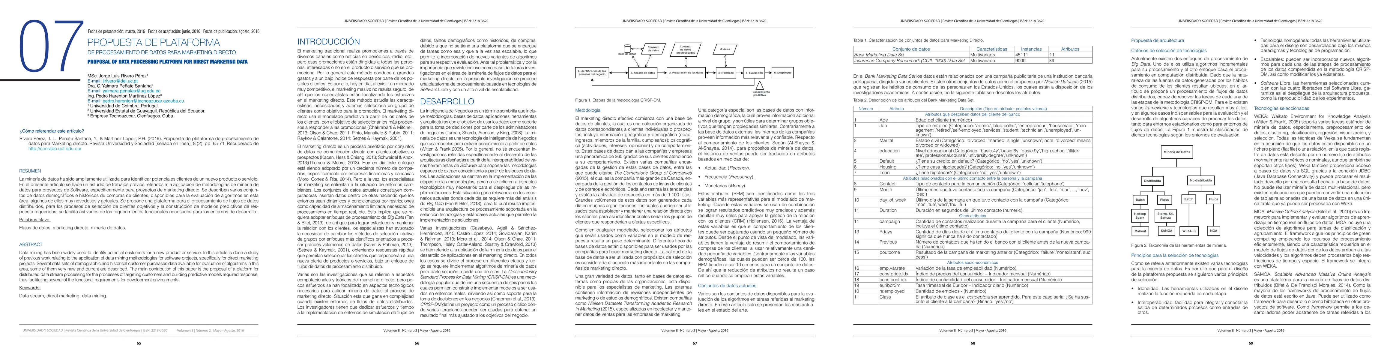 Data mining has been widely used to identify potential customers for a new product or service. In this article is done a study of previous work relating to the application of data mining methodologies for software projects, specifically for direct marketing projects. Several data sets of demographic and historical customer purchases data available for evaluation of algorithms in this area, some of them very new and current are described. The main contribution of this paper is the proposal of a platform for distributed data stream processing for the processes of targeting customers and building predictive models required response; thus facilitating several of the functional requirements for development environments.
