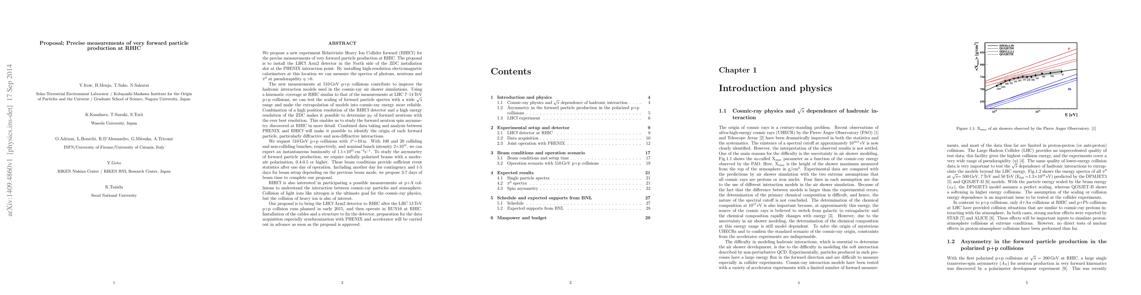We propose a new experiment Relativistic Heavy Ion Collider forward (RHICf) for the precise measurements of very forward particle production at RHIC. The proposal is to install the LHCf Arm2 detector in the North side of the ZDC installation slot at the PHENIX interaction point. By installing high-resolution electromagnetic calorimeters at this location we can measure the spectra of photons, neutrons and pi0 at pseudorapidity eta>6.