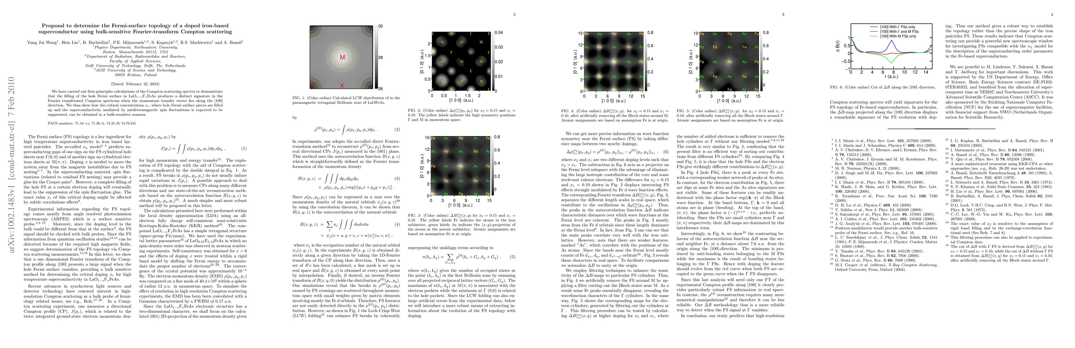 This research proposes using bulk-sensitive Fourier-transform Compton scattering to determine the Fermi-surface topology of doped iron-based superconductors. First-principles calculations show that hole Fermi surface filling in LaO_{1-x}F_{x}FeAs creates a unique signature in the Fourier transformed Compton spectrum along [100], enabling the identification of the critical doping concentration ($x_c$) where superconductivity is suppressed.