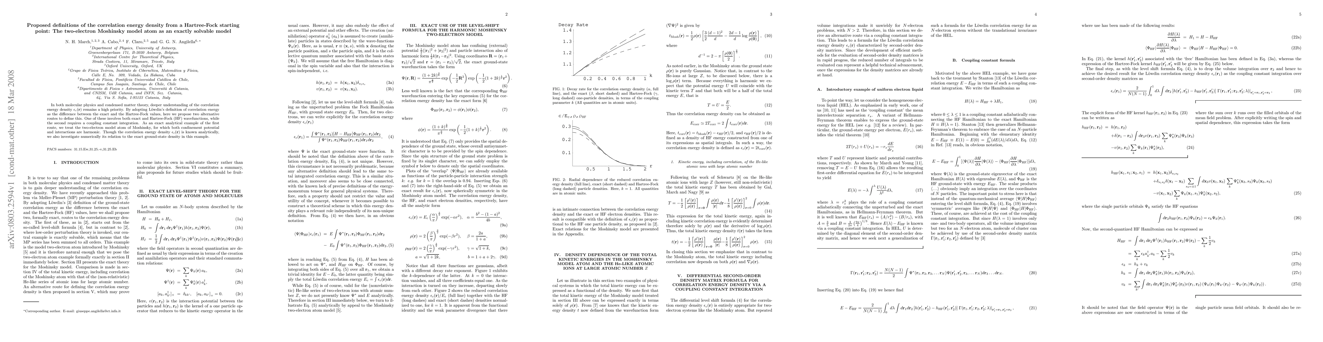 Researchers propose two definitions of correlation energy density based on Hartree-Fock wavefunctions and investigate their relation to exact ground-state density in a simplified atomic model.