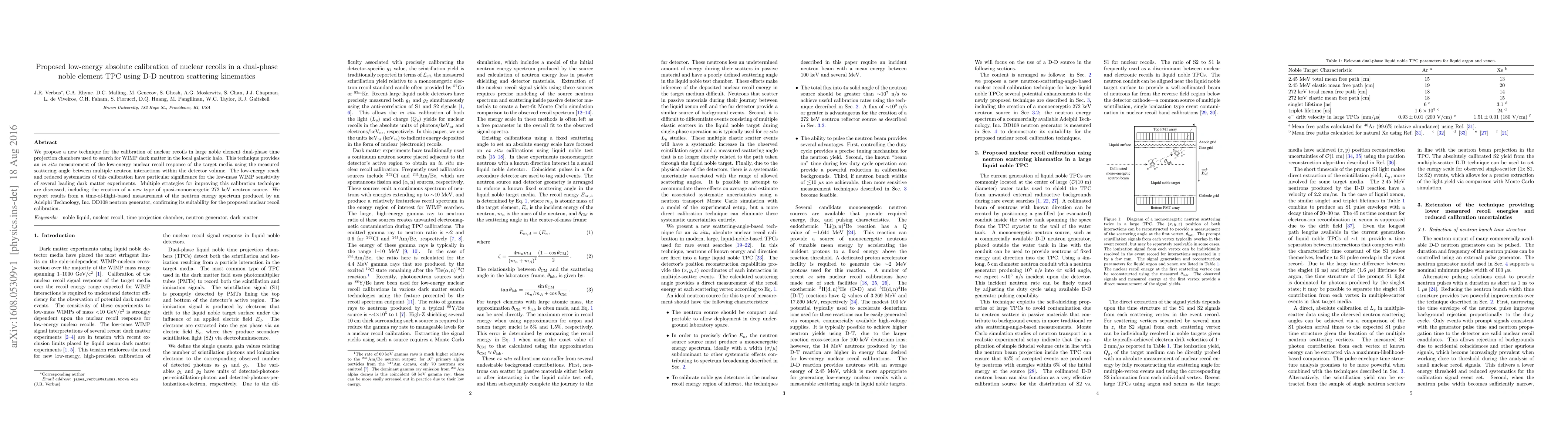This paper proposes a new method for calibrating nuclear recoils in dual-phase noble element time projection chambers, using D-D neutron scattering kinematics for in situ measurements. The technique aims to enhance low-mass WIMP detection sensitivity and reports on a neutron source's suitability for this calibration.