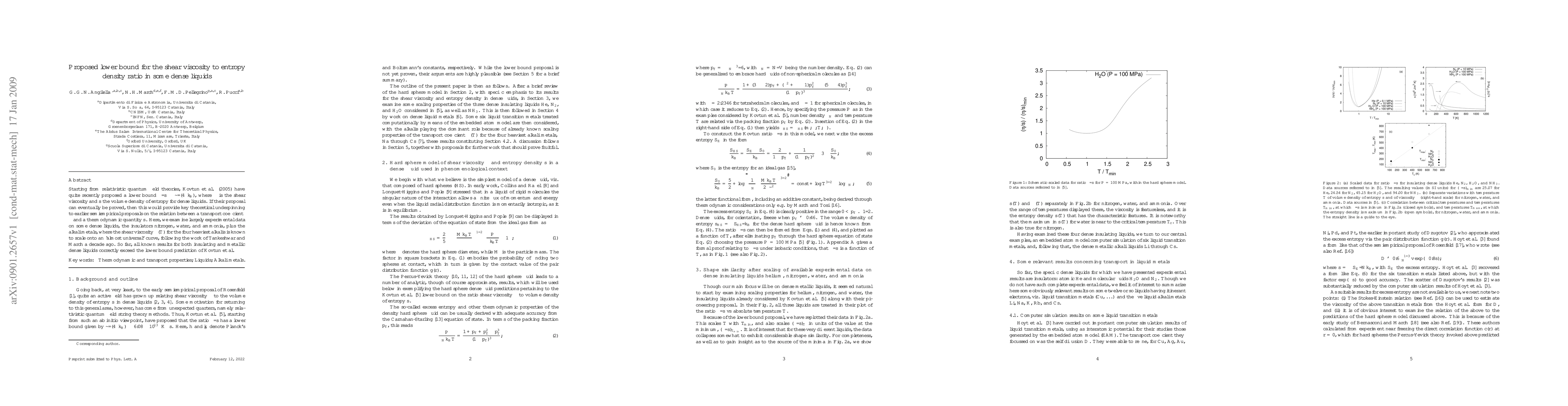 Starting from relativistic quantum field theories, Kovtun et al. (2005) have quite recently proposed a lower bound eta/s >= hbar /(4 pi kB), where eta is the shear viscosity and s the volume density of entropy for dense liquids. If their proposal can eventually be proved, then this would provide key theoretical underpinning to earlier semiempirical proposals on the relation between a transport coefficient eta and a thermodynamic quantity s. Here, we examine largely experimental data on some dense liquids, the insulators nitrogen, water, and ammonia, plus the alkali metals, where the shear viscosity eta(T) for the four heaviest alkalis is known to scale onto an `almost universal' curve, following the work of Tankeshwar and March a decade ago. So far, all known results for both insulating and metallic dense liquids correctly exceed the lower bound prediction of Kovtun et al.