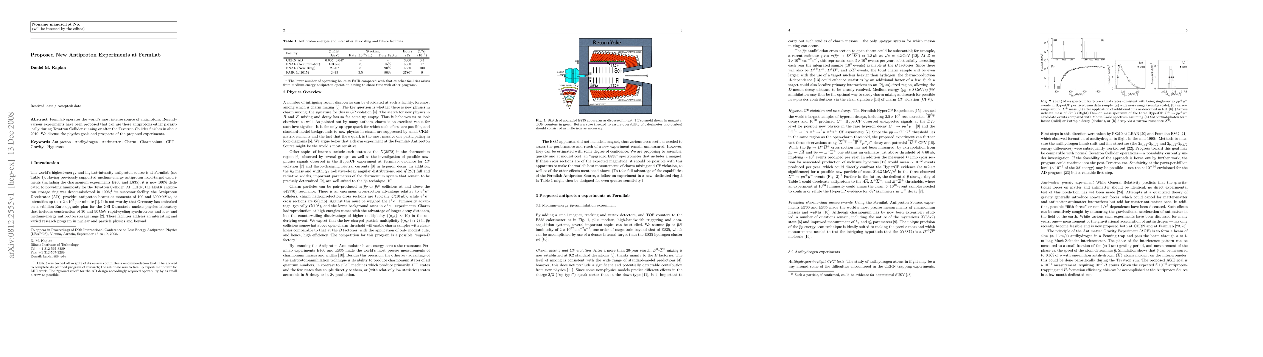 Fermilab's intense antiproton source enables new experimental proposals, either during the Tevatron Collider's operation or post-2010. This paper outlines the physics goals and potential outcomes of these innovative antiproton experiments.