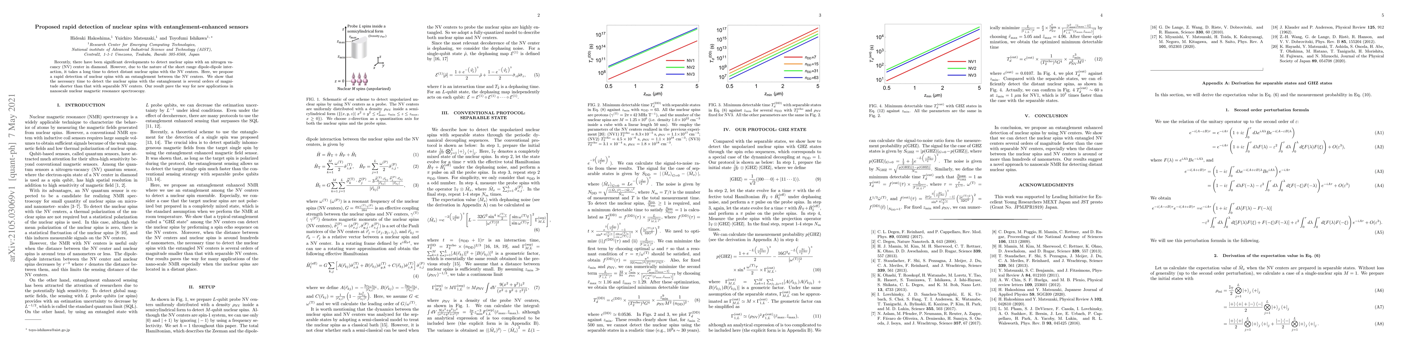 This paper proposes a method for rapid detection of nuclear spins using entanglement between nitrogen vacancy centers in diamond, significantly reducing the time required compared to traditional methods, which could advance nanoscale nuclear magnetic resonance spectroscopy.
