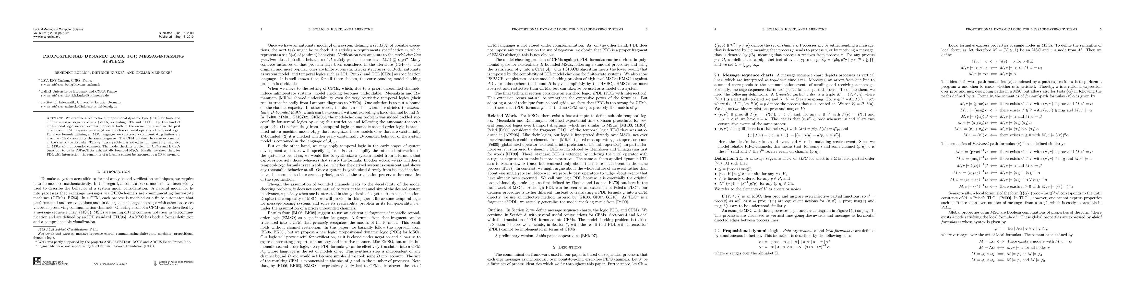 This paper introduces Propositional Dynamic Logic for message-passing systems, enabling the expression of properties in both the past and future of an event. It also shows that the semantics of a formula cannot be captured by a finite-state machine with intersection.