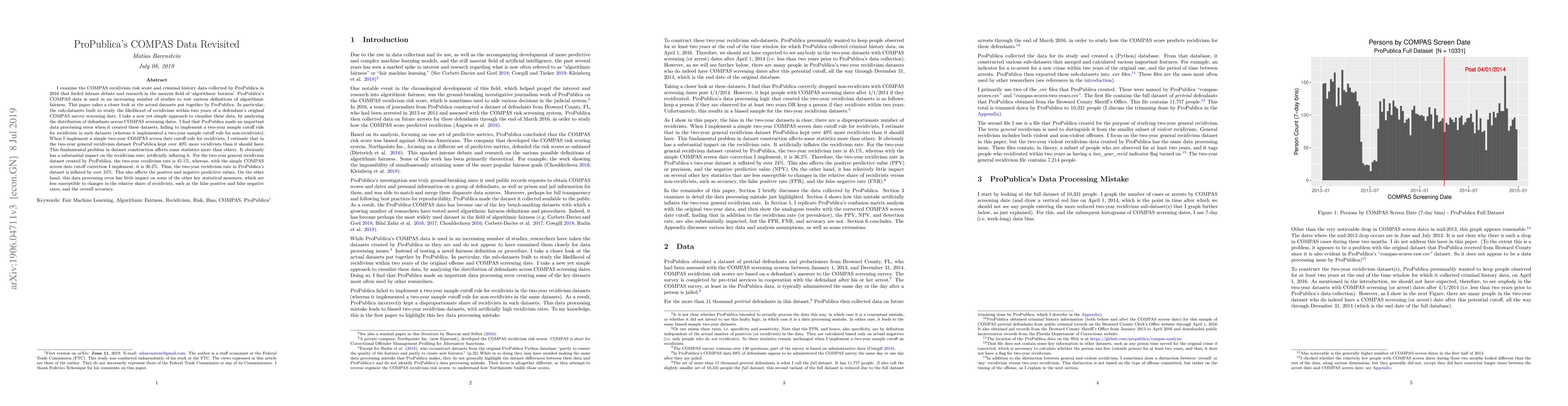 I examine the COMPAS recidivism risk score and criminal history data collected by ProPublica in 2016 that fueled intense debate and research in the nascent field of 'algorithmic fairness'. ProPublica's COMPAS data is used in an increasing number of studies to test various definitions of algorithmic fairness. This paper takes a closer look at the actual datasets put together by ProPublica. In particular, the sub-datasets built to study the likelihood of recidivism within two years of a defendant's original COMPAS survey screening date. I take a new yet simple approach to visualize these data, by analyzing the distribution of defendants across COMPAS screening dates. I find that ProPublica made an important data processing error when it created these datasets, failing to implement a two-year sample cutoff rule for recidivists in such datasets (whereas it implemented a two-year sample cutoff rule for non-recidivists). When I implement a simple two-year COMPAS screen date cutoff rule for recidivists, I estimate that in the two-year general recidivism dataset ProPublica kept over 40% more recidivists than it should have. This fundamental problem in dataset construction affects some statistics more than others. It obviously has a substantial impact on the recidivism rate; artificially inflating it. For the two-year general recidivism dataset created by ProPublica, the two-year recidivism rate is 45.1%, whereas, with the simple COMPAS screen date cutoff correction I implement, it is 36.2%. Thus, the two-year recidivism rate in ProPublica's dataset is inflated by over 24%. This also affects the positive and negative predictive values. On the other hand, this data processing error has little impact on some of the other key statistical measures, which are less susceptible to changes in the relative share of recidivists, such as the false positive and false negative rates, and the overall accuracy.