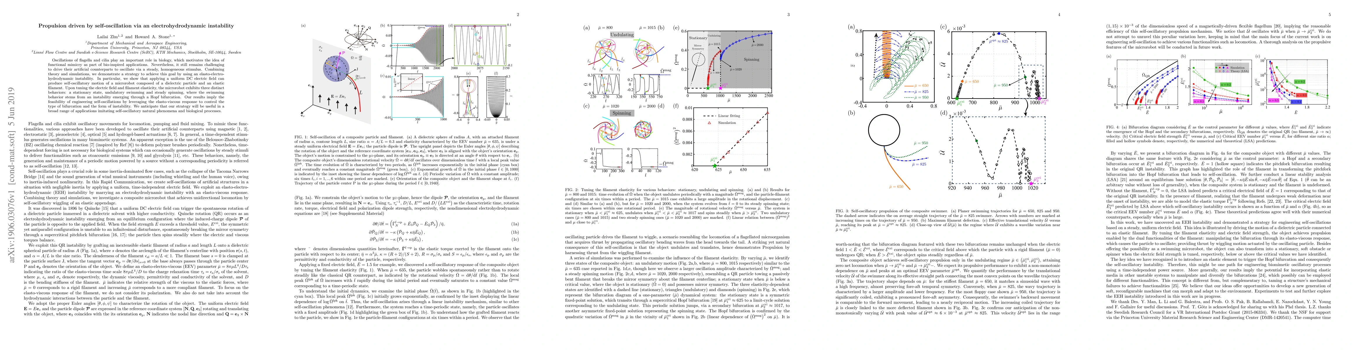 Oscillations of flagella and cilia play an important role in biology, which motivates the idea of functional mimicry as part of bio-inspired applications. Nevertheless, it still remains challenging to drive their artificial counterparts to oscillate via a steady, homogeneous stimulus. Combining theory and simulations, we demonstrate a strategy to achieve this goal by using an elasto-electro-hydrodynamic instability. In particular, we show that applying a uniform DC electric field can produce self-oscillatory motion of a microrobot composed of a dielectric particle and an elastic filament. Upon tuning the electric field and filament elasticity, the microrobot exhibits three distinct behaviors: a stationary state, undulatory swimming and steady spinning, where the swimming behavior stems from an instability emerging through a Hopf bifurcation. Our results imply the feasibility of engineering self-oscillations by leveraging the elasto-viscous response to control the type of bifurcation and the form of instability. We anticipate that our strategy will be useful in a broad range of applications imitating self-oscillatory natural phenomena and biological processes.