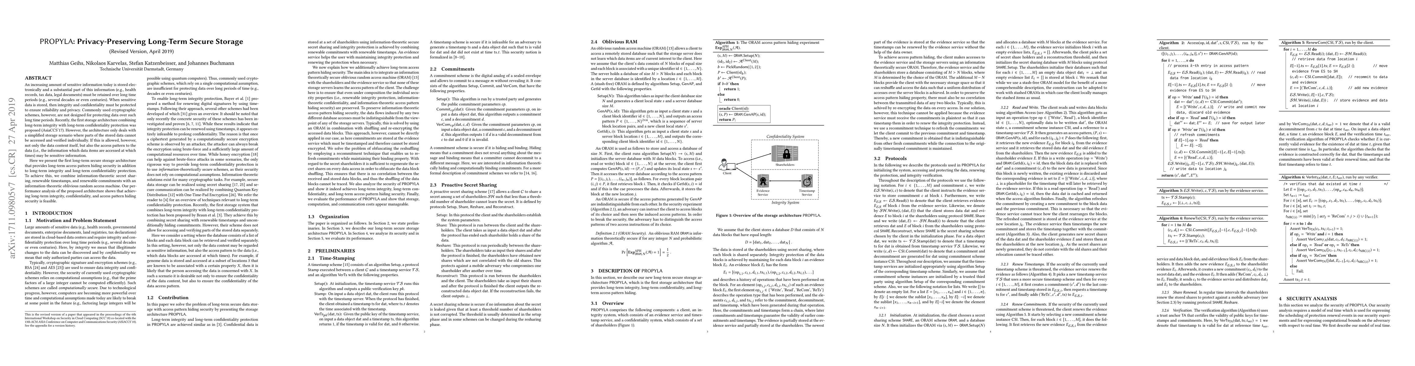 PROPYLA introduces a novel combination of information-theoretic secret sharing, renewable timestamps, renewable commitments, and an information-theoretic oblivious random access machine to ensure long-term integrity, confidentiality, and access pattern hiding security.