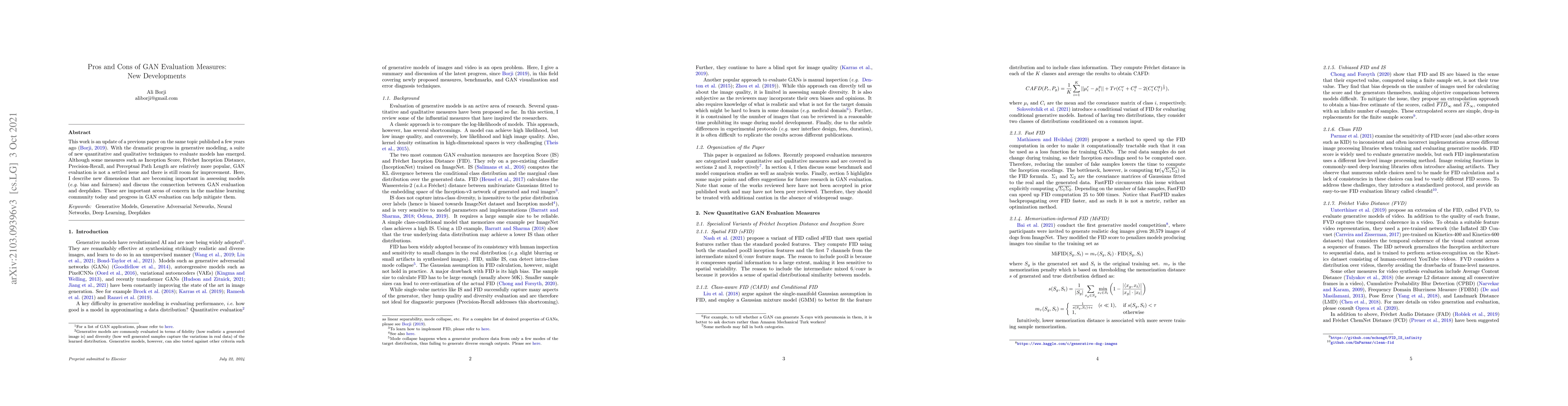 This work is an update of a previous paper on the same topic published a few years ago. With the dramatic progress in generative modeling, a suite of new quantitative and qualitative techniques to evaluate models has emerged. Although some measures such as Inception Score, Frechet Inception Distance, Precision-Recall, and Perceptual Path Length are relatively more popular, GAN evaluation is not a settled issue and there is still room for improvement. Here, I describe new dimensions that are becoming important in assessing models (e.g. bias and fairness) and discuss the connection between GAN evaluation and deepfakes. These are important areas of concern in the machine learning community today and progress in GAN evaluation can help mitigate them.