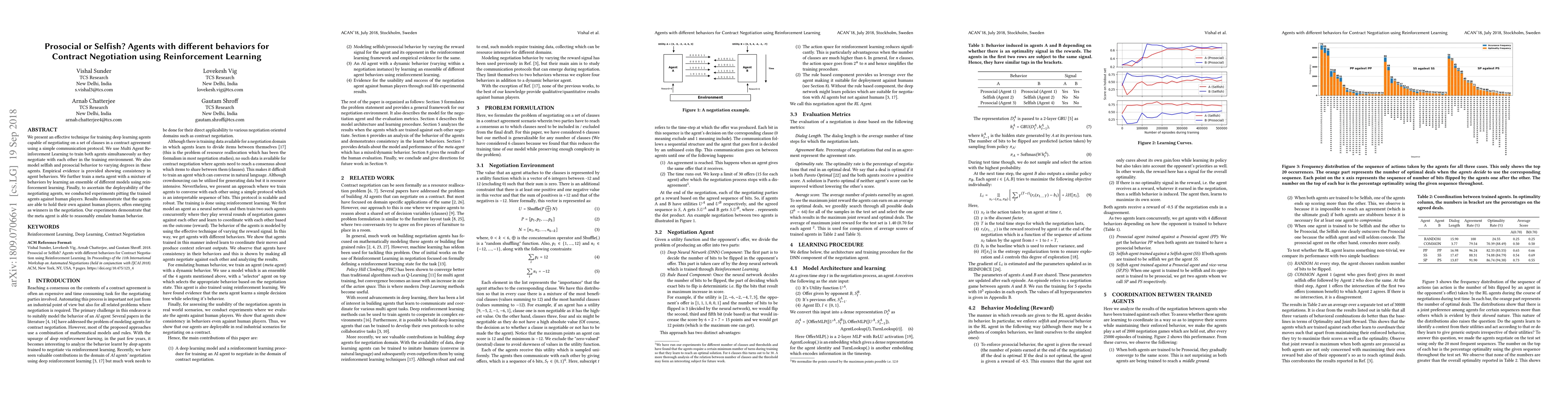We present an effective technique for training deep learning agents capable of negotiating on a set of clauses in a contract agreement using a simple communication protocol. We use Multi Agent Reinforcement Learning to train both agents simultaneously as they negotiate with each other in the training environment. We also model selfish and prosocial behavior to varying degrees in these agents. Empirical evidence is provided showing consistency in agent behaviors. We further train a meta agent with a mixture of behaviors by learning an ensemble of different models using reinforcement learning. Finally, to ascertain the deployability of the negotiating agents, we conducted experiments pitting the trained agents against human players. Results demonstrate that the agents are able to hold their own against human players, often emerging as winners in the negotiation. Our experiments demonstrate that the meta agent is able to reasonably emulate human behavior.