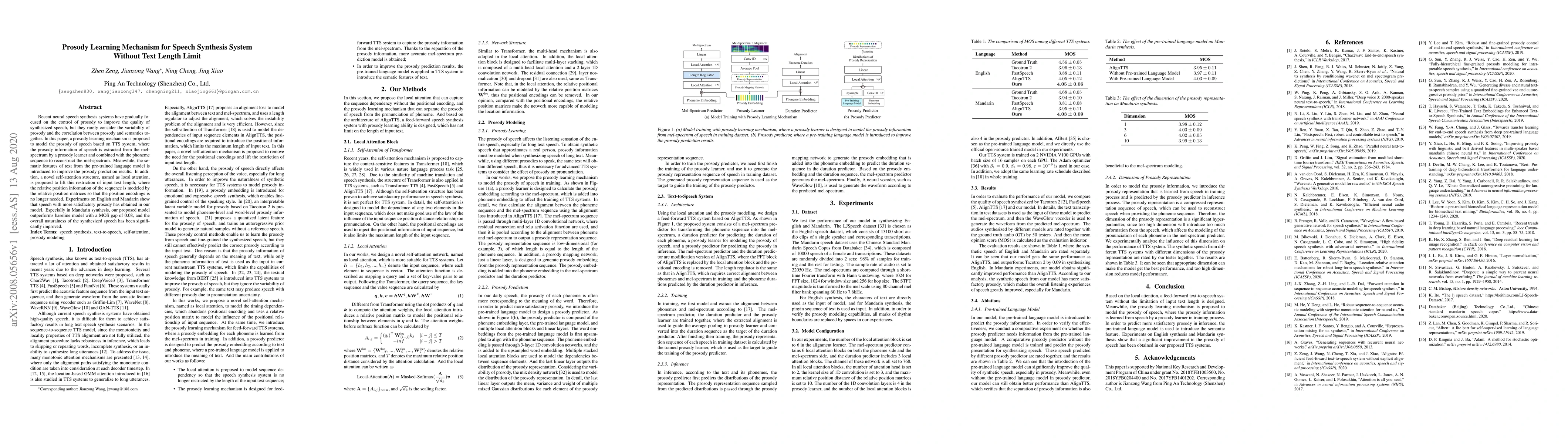This paper proposes a prosody learning mechanism for a text-to-speech system that models prosody directly from mel-spectrum without using text input, utilizing a self-attention structure to overcome length limitations. The model improves prosody prediction by integrating semantic features and shows better naturalness in synthesized speech, especially in Mandarin, outperforming baseline models.