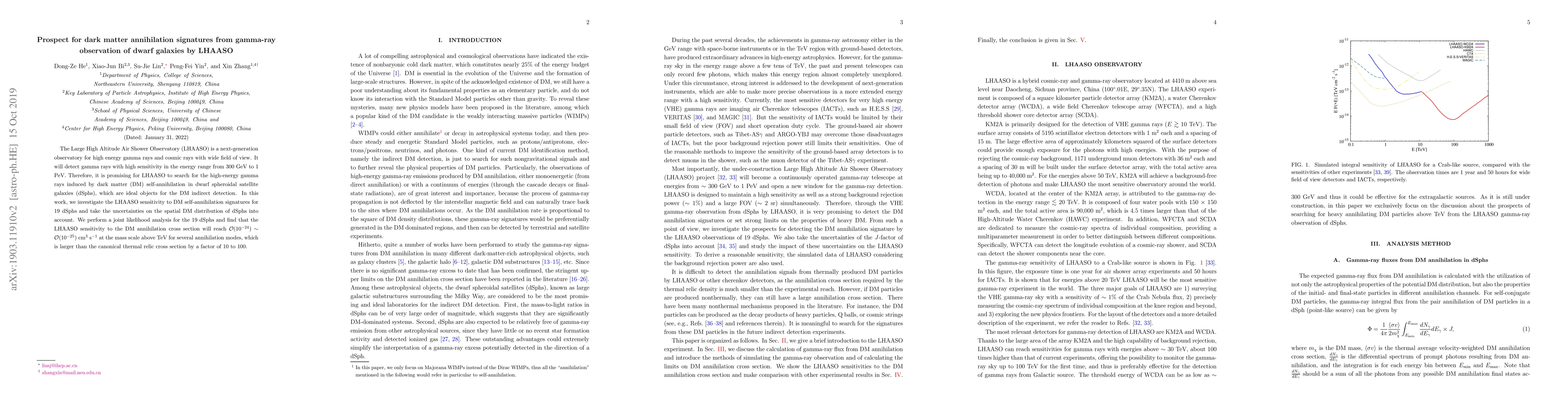 The LHAASO observatory has the potential to detect dark matter signatures from dwarf galaxies with high sensitivity, potentially detecting dark matter self-annihilation signals at scales 10-100 times larger than predicted by thermal relic models.