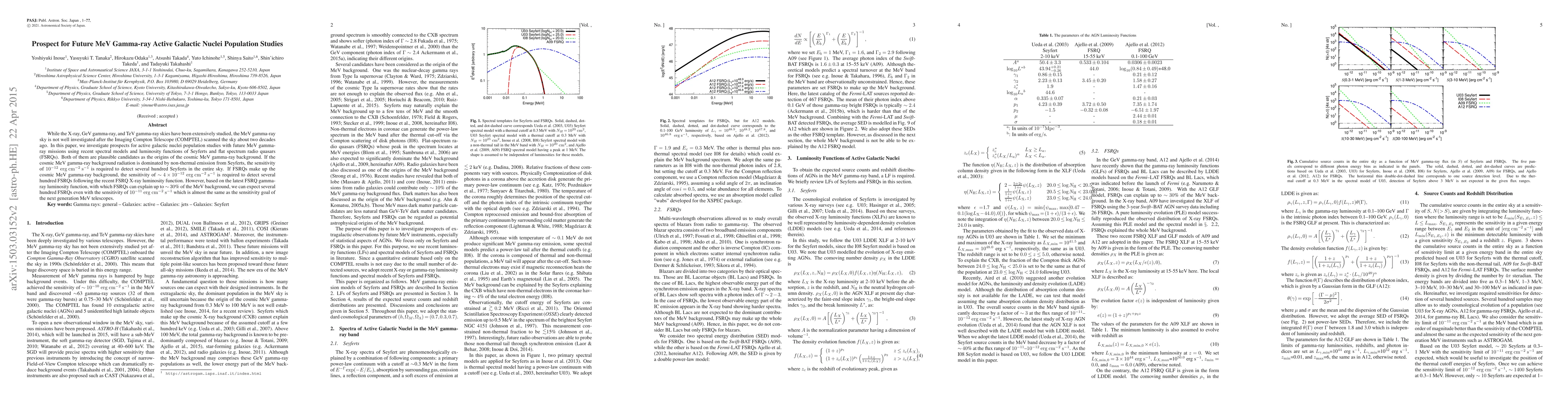 This paper explores the potential of future MeV gamma-ray missions for studying active galactic nuclei populations. It suggests that with a sensitivity of 10^-12 erg cm^-2 s^-1, several hundred Seyferts could be detected, and even with a less stringent sensitivity of 10^-11 erg cm^-2 s^-1, hundreds of FSRQs could be observed, aligning with the goals of upcoming MeV telescopes.