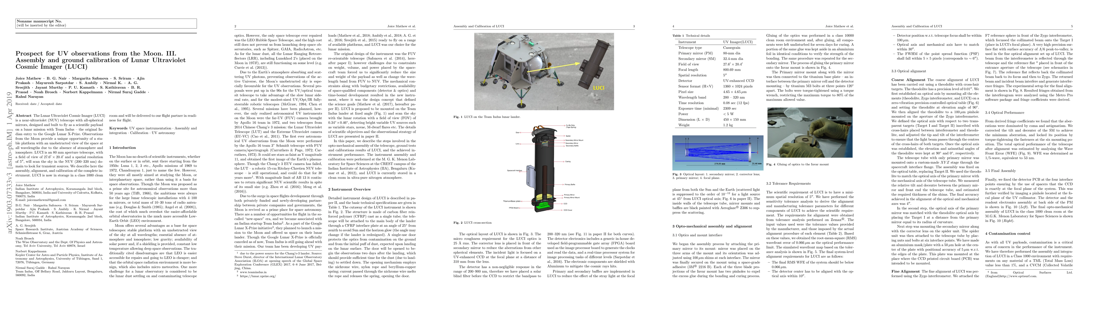 The Lunar Ultraviolet Cosmic Imager (LUCI) is a near-ultraviolet (NUV) telescope with all-spherical mirrors, designed and built to fly as a scientific payload on a lunar mission with Team Indus - the original Indian entry to the Google Lunar X-Prize. Observations from the Moon provide a unique opportunity of a stable platform with an unobstructed view of the space at all wavelengths due to the absence of atmosphere and ionosphere. LUCI is an 80 mm aperture telescope, with a field of view of 27.6'x 20.4' and a spatial resolution of 5'', will scan the sky in the NUV (200-320 nm) domain to look for transient sources. We describe here the assembly, alignment, and calibration of the complete instrument. LUCI is now in storage in a class 1000 clean room and will be delivered to our flight partner in readiness for flight.